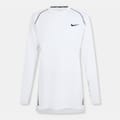 This Nike top features a crew neck and long raglan sleeves, offering a slim fit with fitted cuffs. The solid design is enhanced by a logo and contrast stitching. The hemline is straight, adding to its sleek appearance. Ideal as a base layer, this top combines style and functionality. -