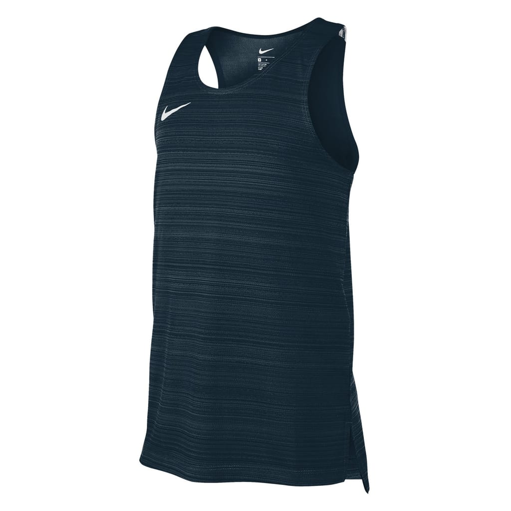 This Nike top is designed for performance, featuring a sleeveless design and a scoop neck. The regular fit and straight hem provide comfort and ease of movement, making it ideal for summer activities. The horizontal stripe pattern adds a stylish touch, while the logo embellishment highlights its activewear collection. -