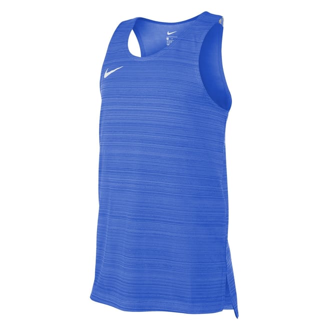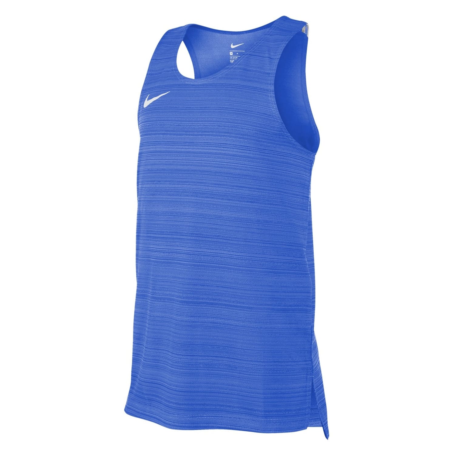 This Nike top is designed for performance, featuring a sleeveless design and a scoop neck. The regular fit and straight hem ensure comfort and style, while the horizontal stripe pattern adds a touch of flair. Perfect for summer, this activewear piece is completed with a logo embellishment, making it a standout choice for your athletic wardrobe. -