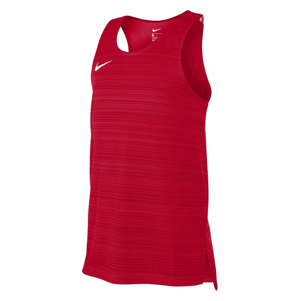 This Nike top is designed for performance, featuring a sleeveless design and a crew neck. The regular fit ensures comfort, while the straight hem adds a clean finish. Adorned with a logo, it showcases a horizontal stripe pattern, making it ideal for summer activities. -