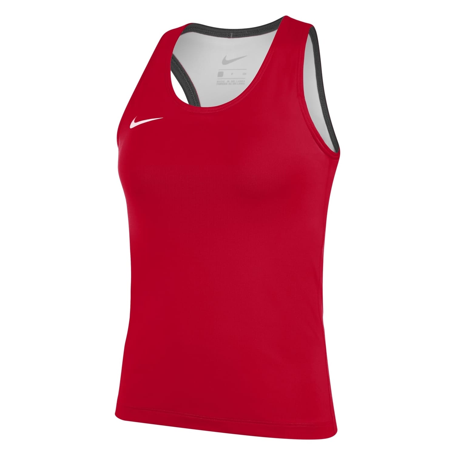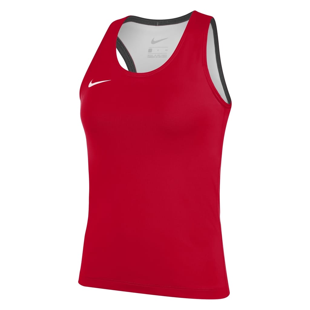 This Nike top is designed for performance with a sleeveless, slim fit and a scoop neckline. Featuring a solid pattern and a straight hem, it is perfect for summer. The top is embellished with a logo, adding a touch of brand identity. -