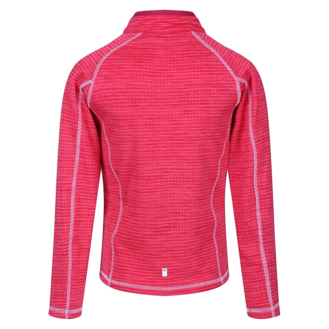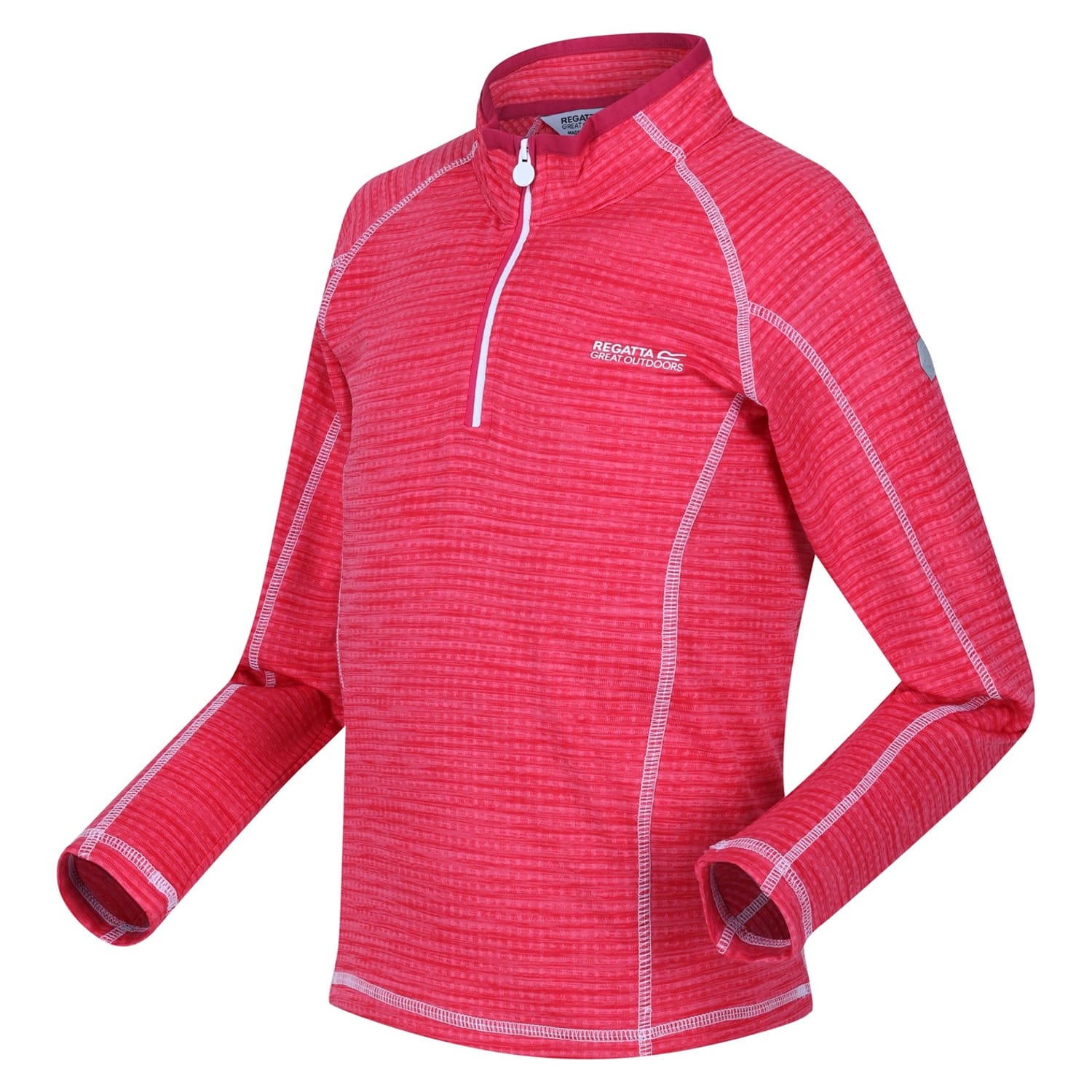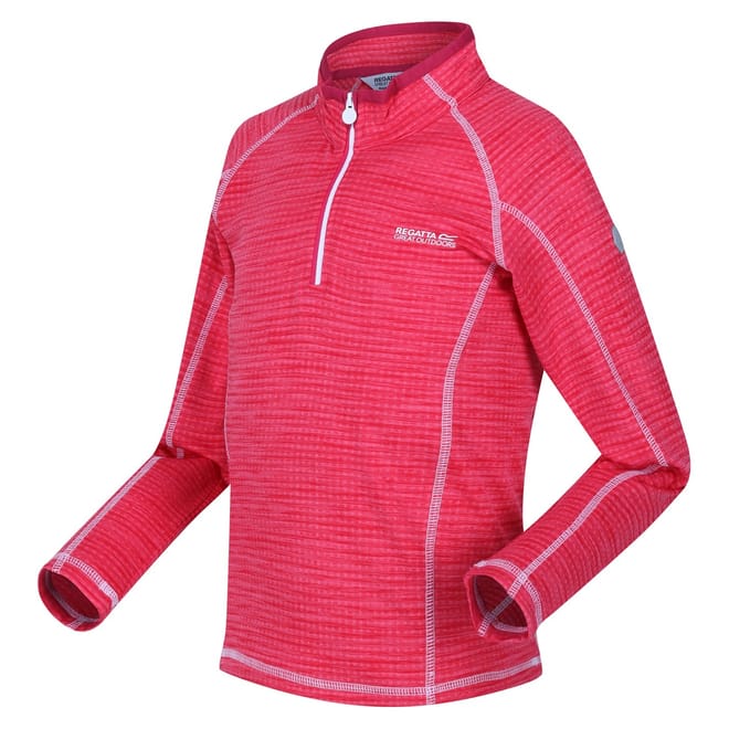 Discover Regatta's long sleeve top featuring a quarter zipper closure and a zip neck. This regular fit piece is designed with a high collar and raglan sleeves for added comfort. The horizontal stripe pattern is complemented by a straight hem and contrast stitch detailing. Embellished with a logo and a front zipper pocket, this top combines style and functionality effortlessly. -