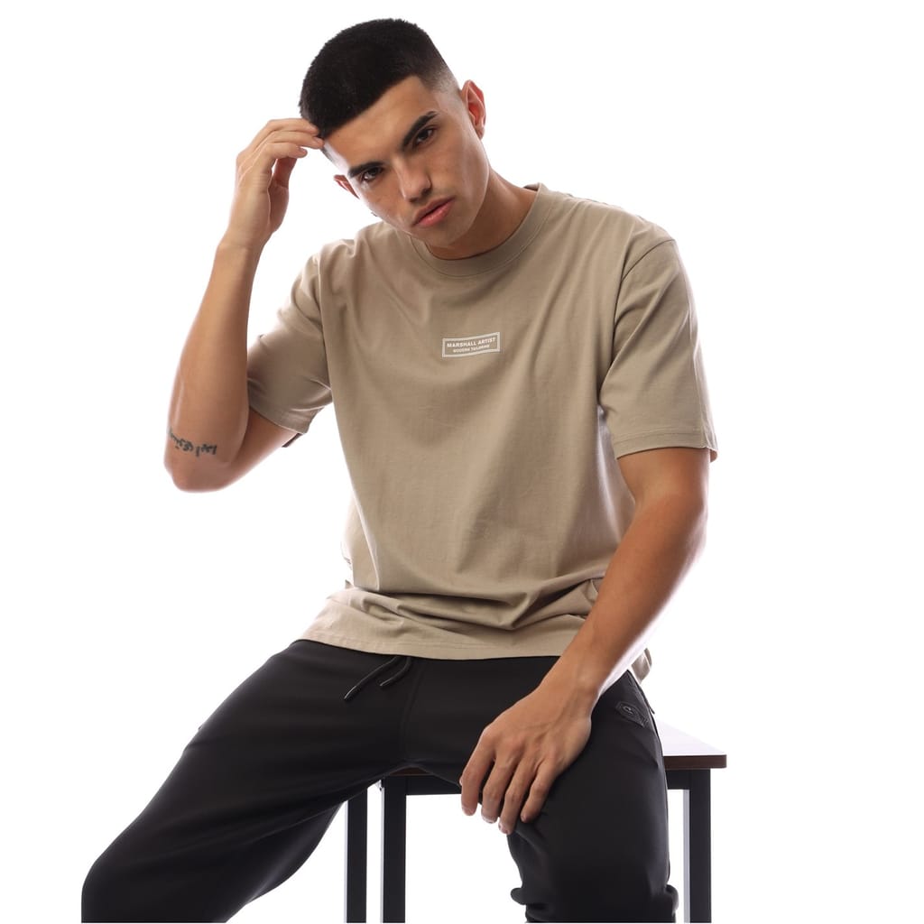 Discover the casual elegance of Marshall Artist's top, featuring a regular fit and a solid pattern. This short-sleeve design is adorned with a subtle logo, adding a touch of distinction. The crew neck offers a classic look, making it a versatile addition to any wardrobe. -