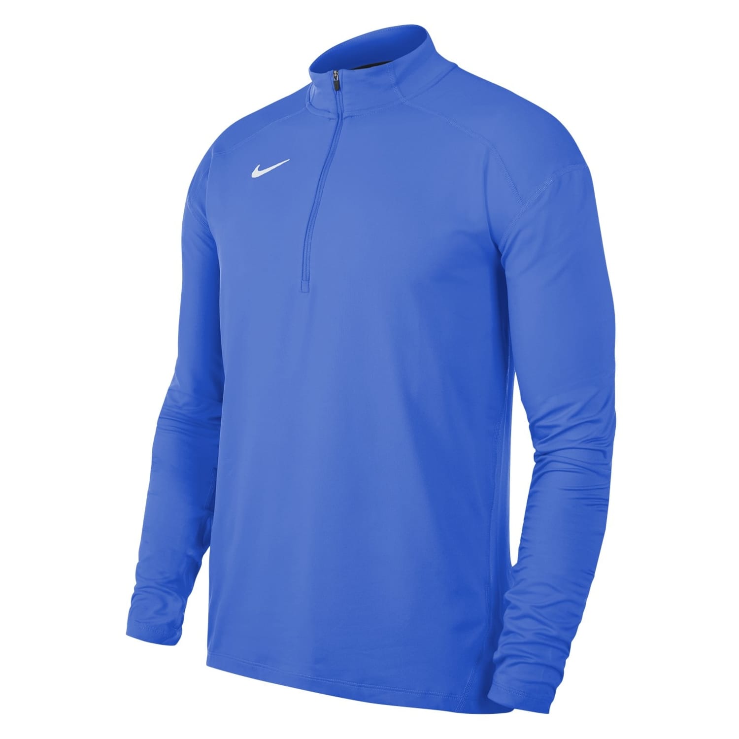 This Nike top features a zip neck and a regular fit, perfect for performance activities. The long raglan sleeves with fitted cuffs ensure comfort and flexibility. A straight hem and solid pattern provide a sleek look, while the band collar adds a touch of style. The top is equipped with a zipper closure and a front zipper pocket, complete with a logo embellishment for a signature finish. -