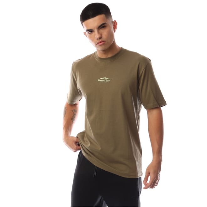 Discover the Marshall Artist top from the Mountain collection, featuring a regular fit and short sleeves. This piece showcases a crew neck and a ribbed collar, complemented by a striking graphic print. The printed logo adds a distinctive touch, making it a standout choice for any casual wardrobe. -