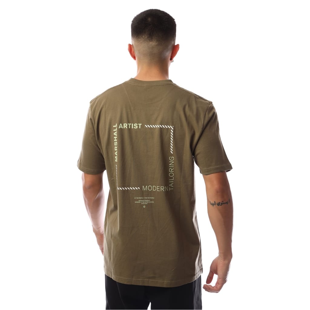 Discover the Marshall Artist top, featuring a regular fit and short sleeves. This piece showcases a striking graphic print with a chevron pattern, complemented by a crew neck and ribbed collar. Ideal for those seeking a stylish yet comfortable addition to their wardrobe. -