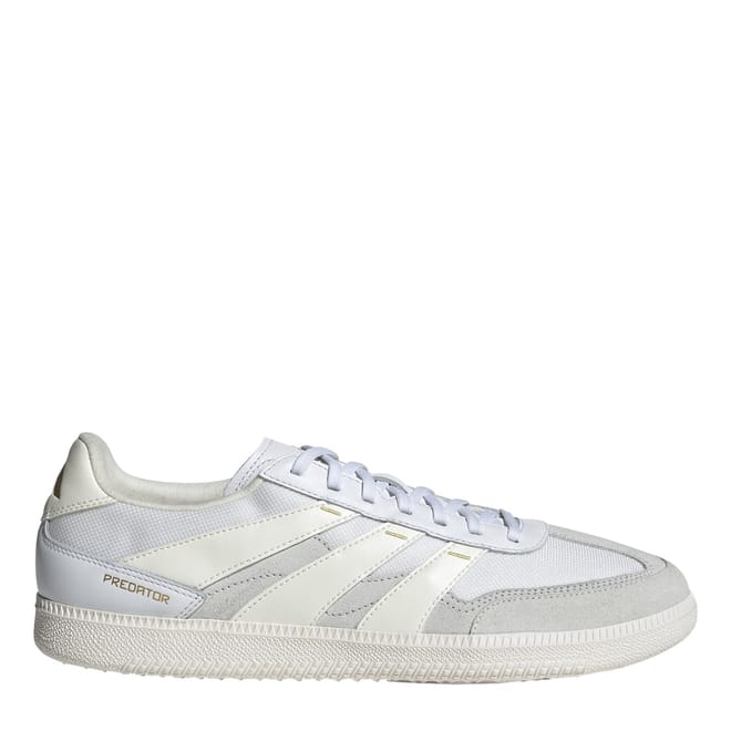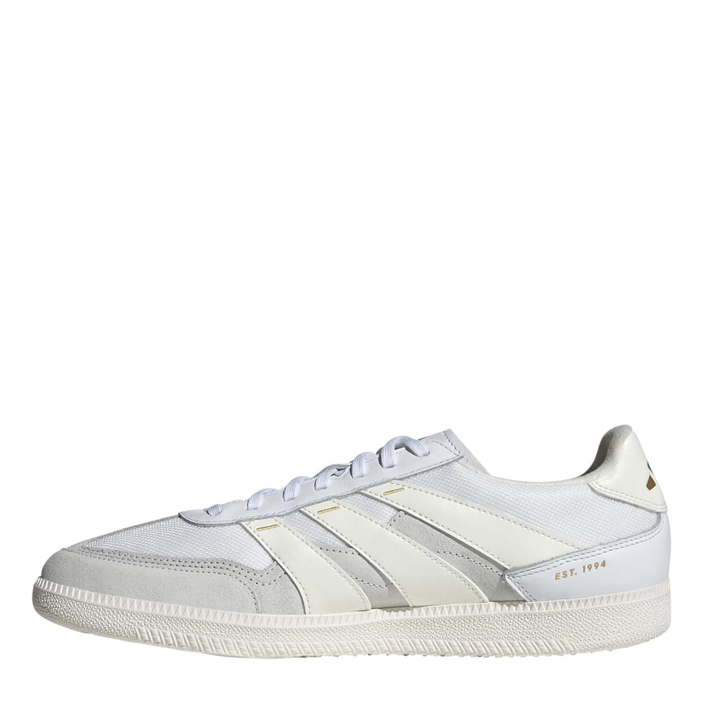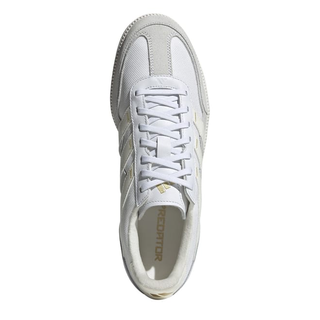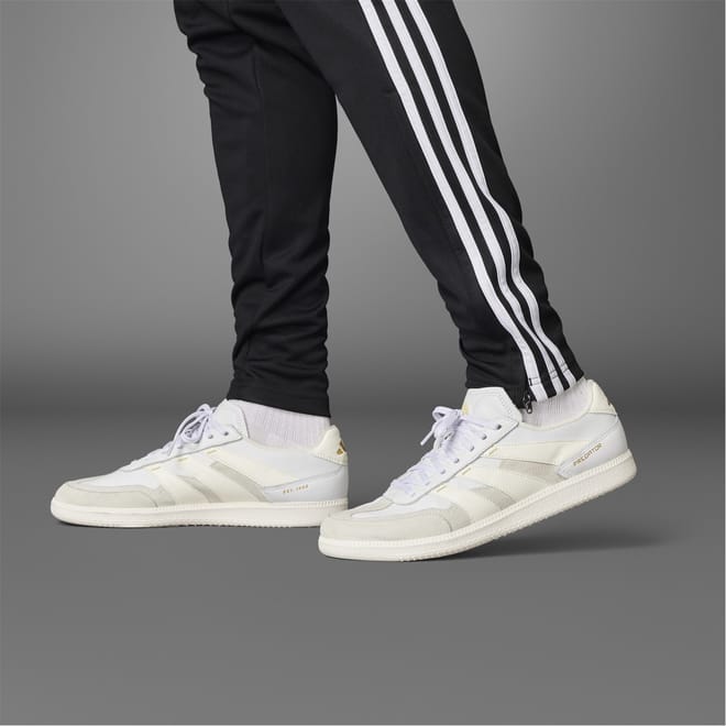 Introducing the adidas Predator football trainers, designed for young athletes. These low-top sneakers feature a round toe and the iconic three stripes pattern. Perfect for football activities, they combine the style of a boot with the comfort of sneakers, ensuring optimal performance on the field. -