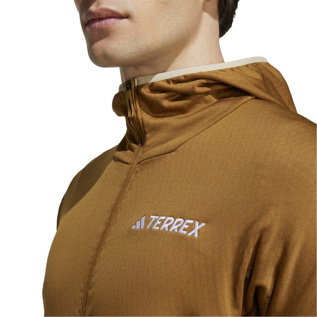 This adidas top features a hooded neck and a quarter zipper closure, offering a practical and stylish design. The long raglan sleeves provide a comfortable fit, while the solid pattern adds a classic touch. Crafted in a regular fit, this top is perfect for those seeking a blend of functionality and style. -