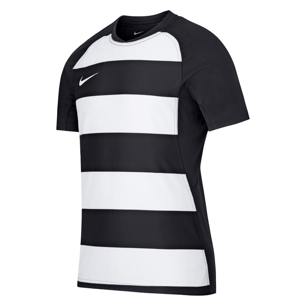 This Nike top is designed for performance with a regular fit and short raglan sleeves. It features a crew neck and a ribbed collar, complemented by a straight hem. The horizontal stripe pattern adds a stylish touch, while the logo embellishment provides a signature finish. -