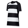 This Nike top is designed for performance with a regular fit and short raglan sleeves. It features a crew neck and a straight hem, offering a comfortable and stylish look. The horizontal stripe pattern adds a dynamic touch, while the logo embellishment highlights the brand's identity. -