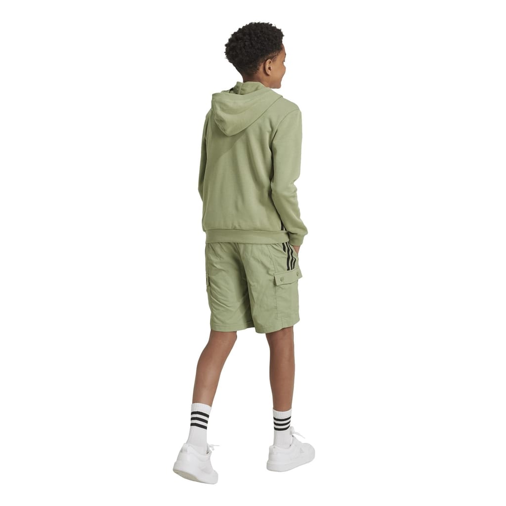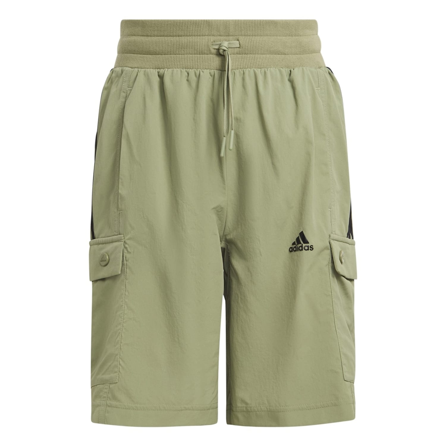 These adidas kids' bermuda shorts are perfect for casual wear. Featuring a solid pattern, they come with a convenient drawstring closure and side pockets. The iconic logo embellishment adds a touch of brand recognition, making them a stylish choice for any young wardrobe. -