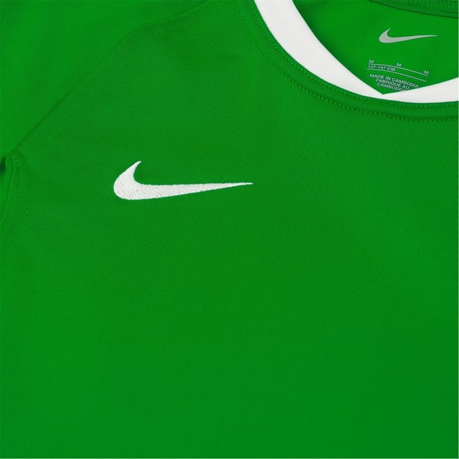This Nike top is designed for performance with a regular fit and a crew neck. It features short raglan sleeves and a straight hem. The solid pattern is complemented by an embroidered logo, adding a touch of style to this functional piece. -