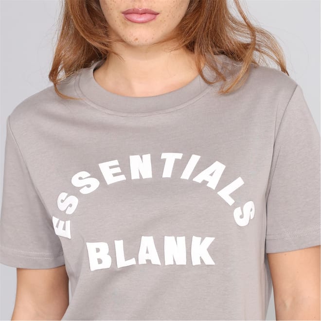 Discover the Blank Essentials top, featuring an oversize fit and short sleeves. This piece showcases a crew neck and a ribbed collar, complemented by a straight hem. The design is enhanced with distinctive lettering and a logo print, making it a standout in the essentials collection. -