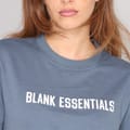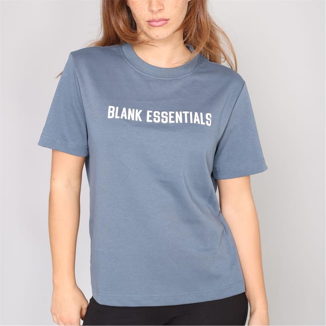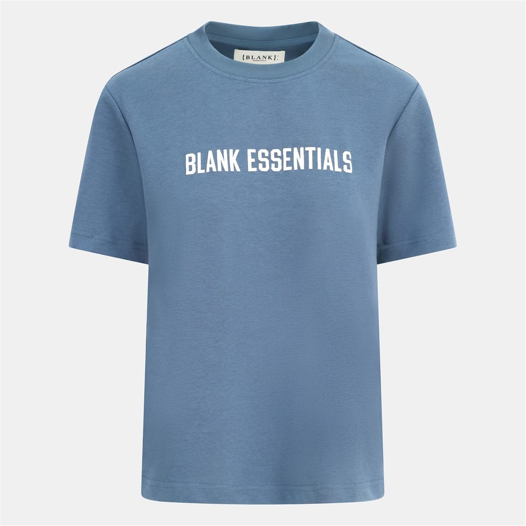Discover the Blank Essentials top, featuring an oversize fit and short sleeves. This essential piece showcases a crew neck and a ribbed collar, complemented by a straight hem. The logo print and text graphic add a distinctive touch, making it a versatile addition to your wardrobe. -