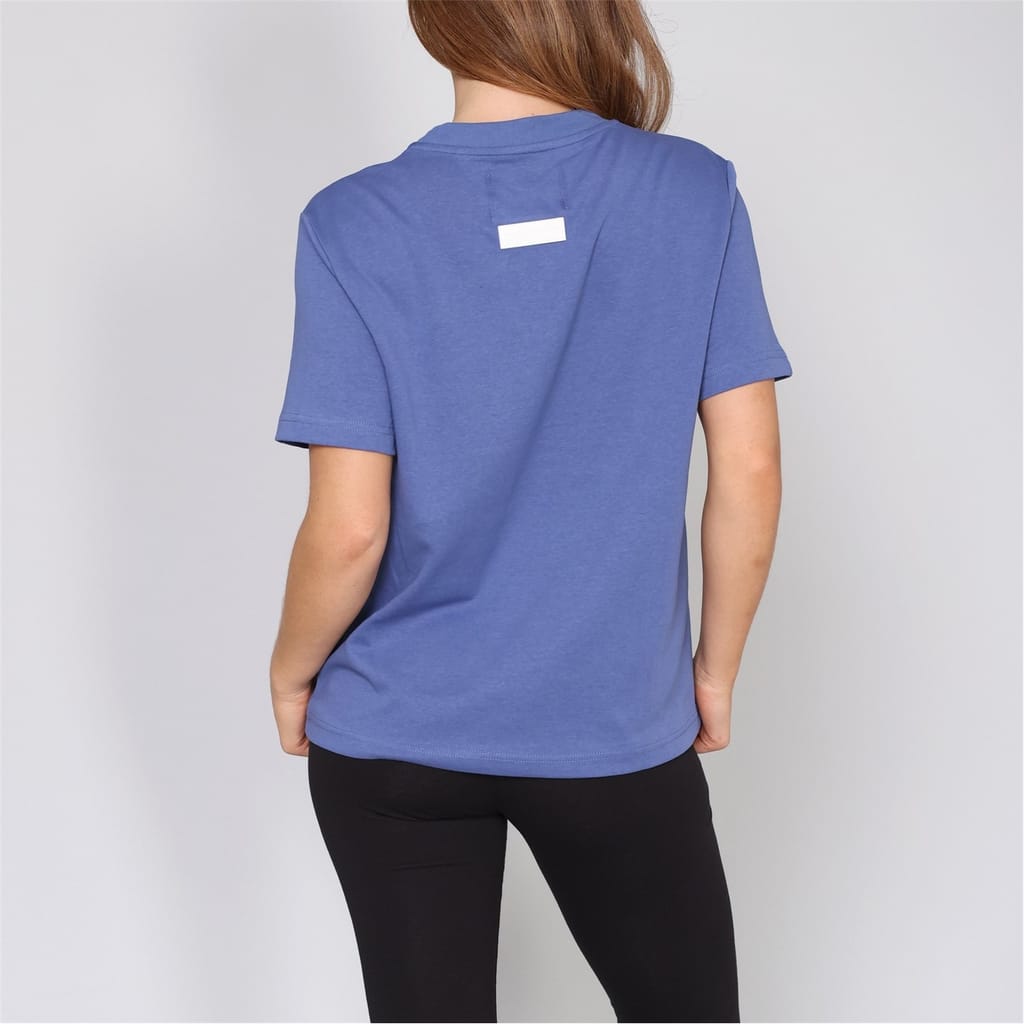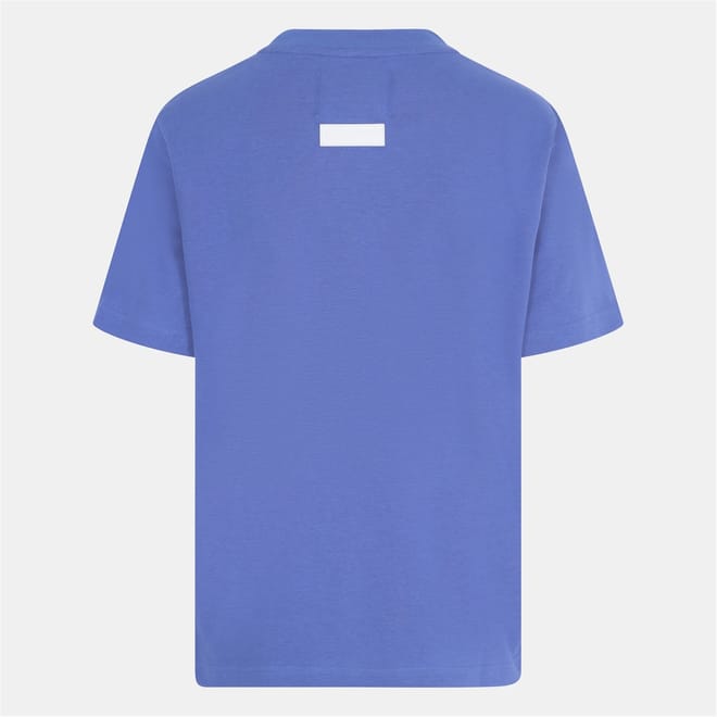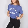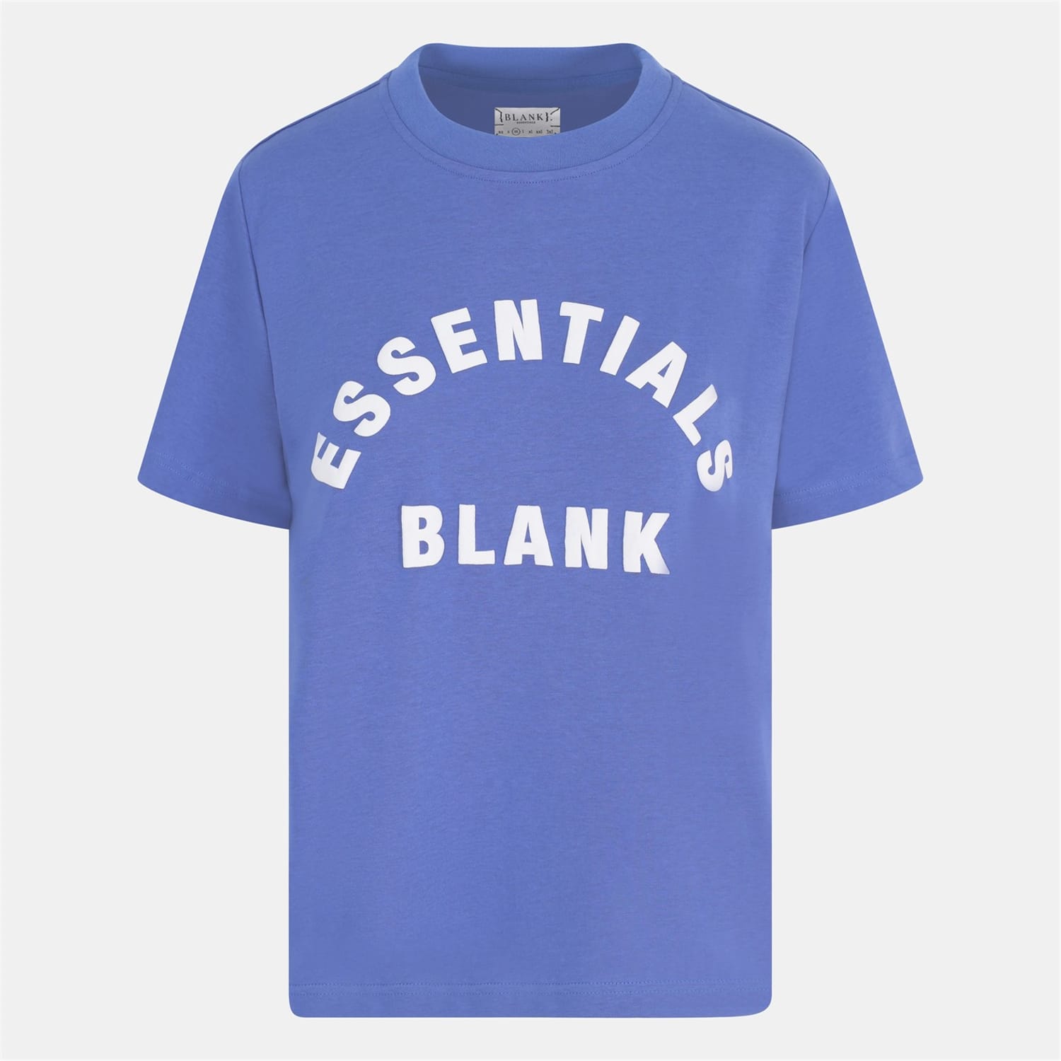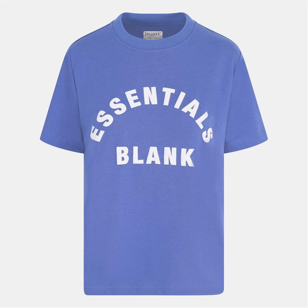 Discover the Blank Essentials top, featuring an oversize fit and short sleeves. This essential piece showcases a crew neck and a ribbed collar, complemented by a straight hem. The graphic print with arch lettering adds a distinctive touch, making it a versatile addition to your wardrobe. -