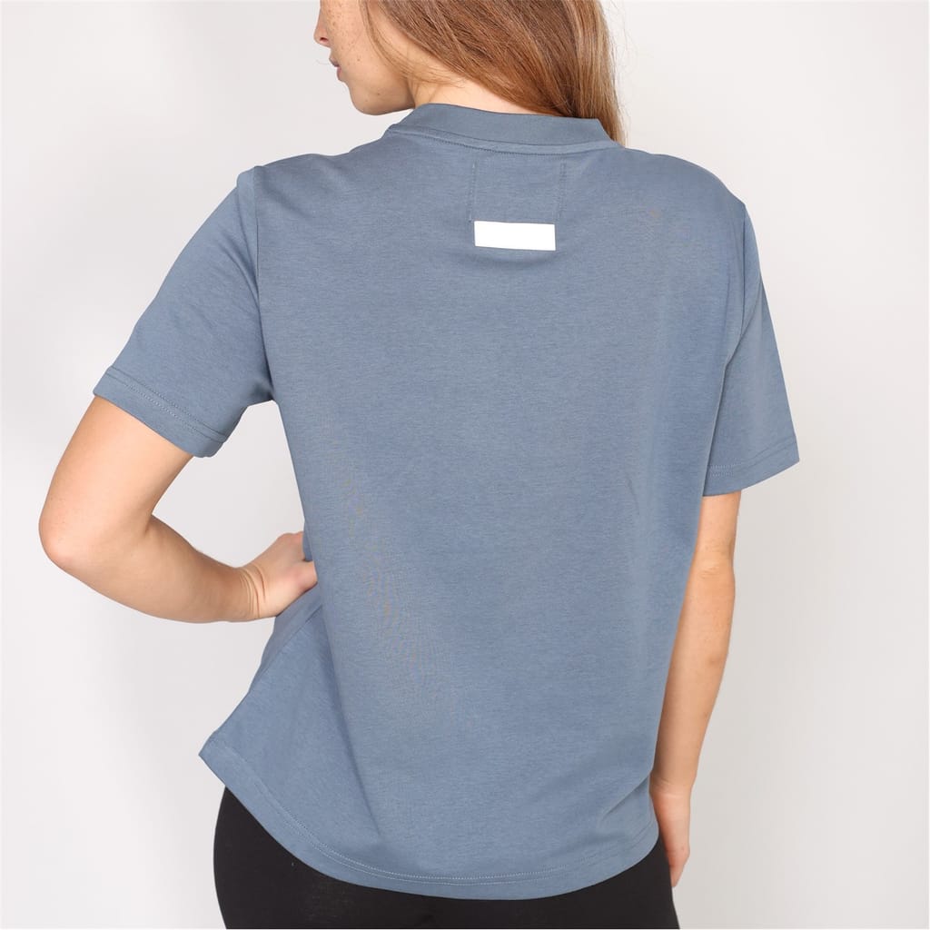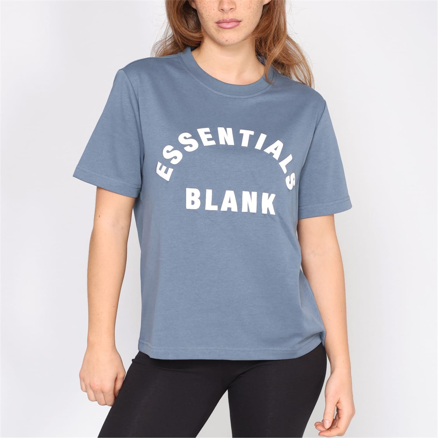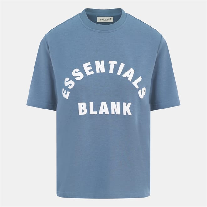 Discover the Blank Essentials top, featuring an oversize fit and short sleeves. This piece showcases a crew neck and a ribbed collar, complemented by a straight hem. The graphic print design is enhanced with arch lettering and a printed logo, making it a standout in the Essentials collection. -