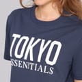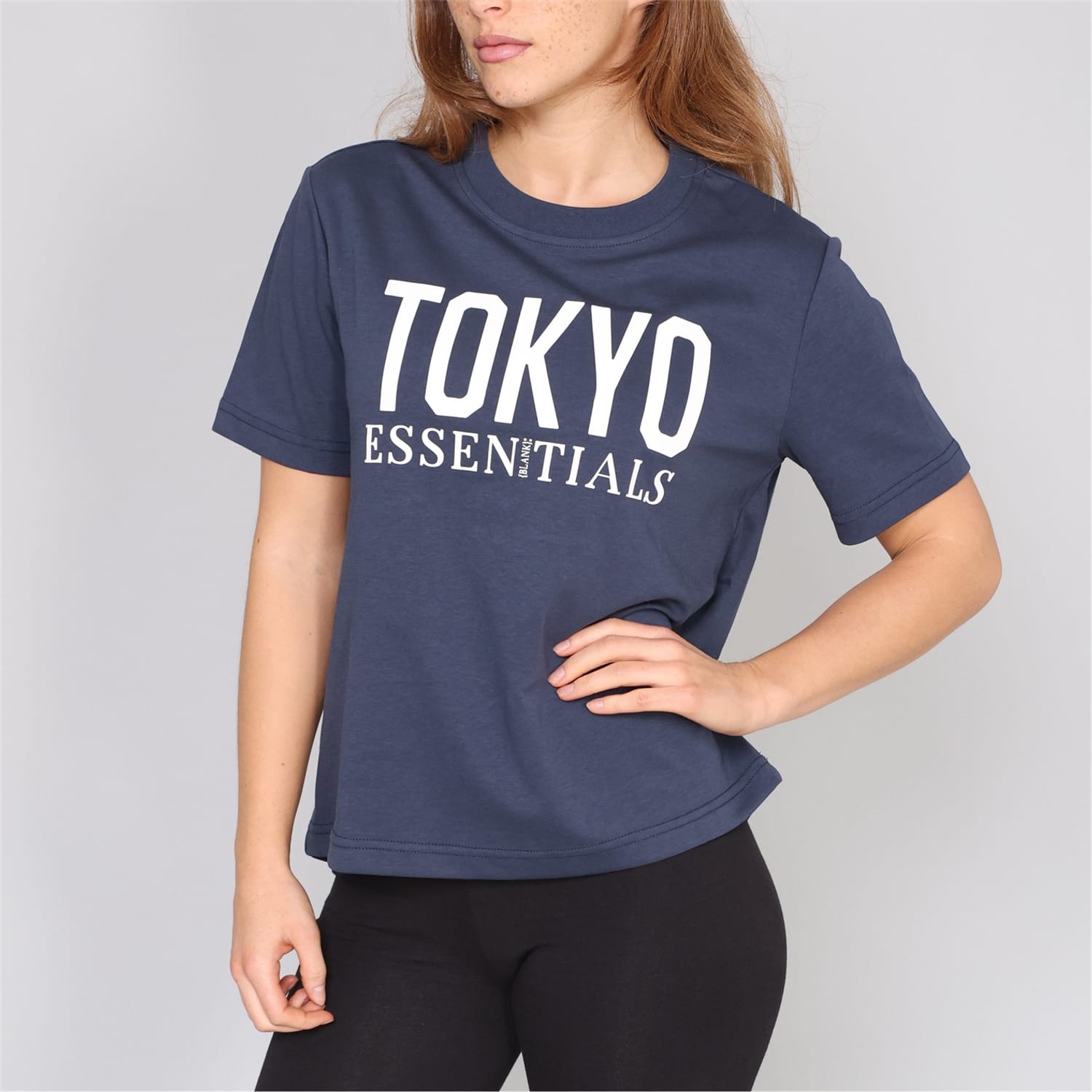 The Blank Essentials Tokyo top features an oversize fit with a crew neck and short sleeves. It showcases a striking graphic print with lettering, complemented by a ribbed collar and a straight hem. Part of the Essentials collection, this top is perfect for those who appreciate a blend of style and comfort. -
