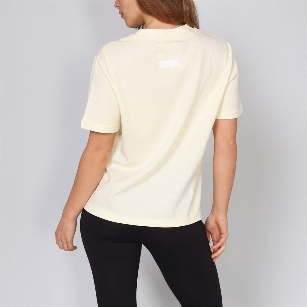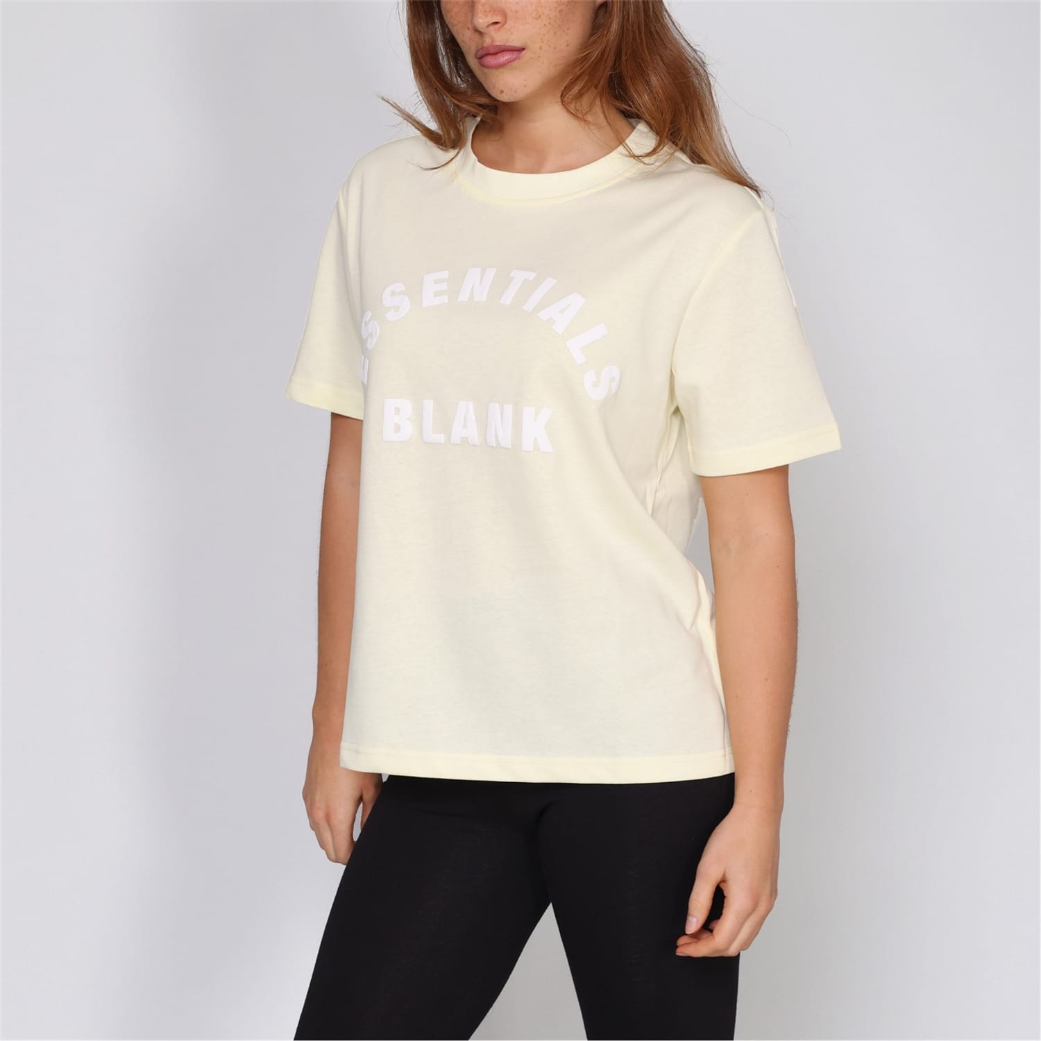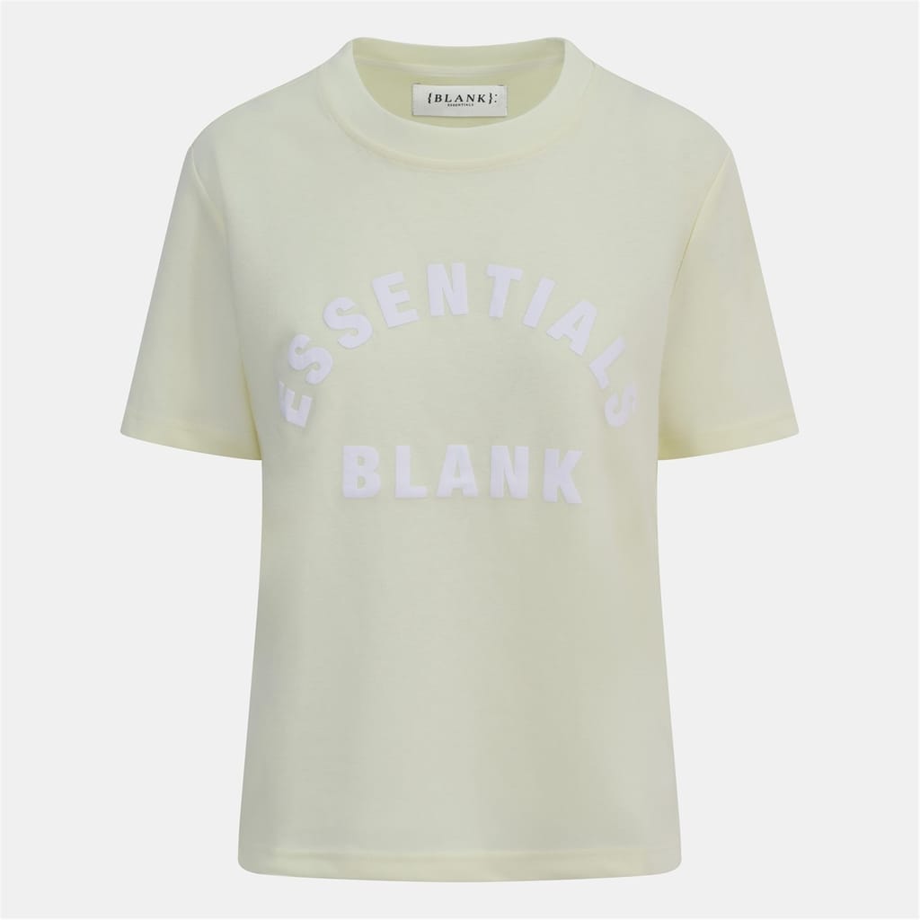 Discover the Blank Essentials top, featuring an oversize fit and short sleeves. This essential piece showcases a crew neck and a ribbed collar, complemented by a straight hem. The logo print with arch lettering adds a distinctive touch, making it a versatile addition to your wardrobe. -