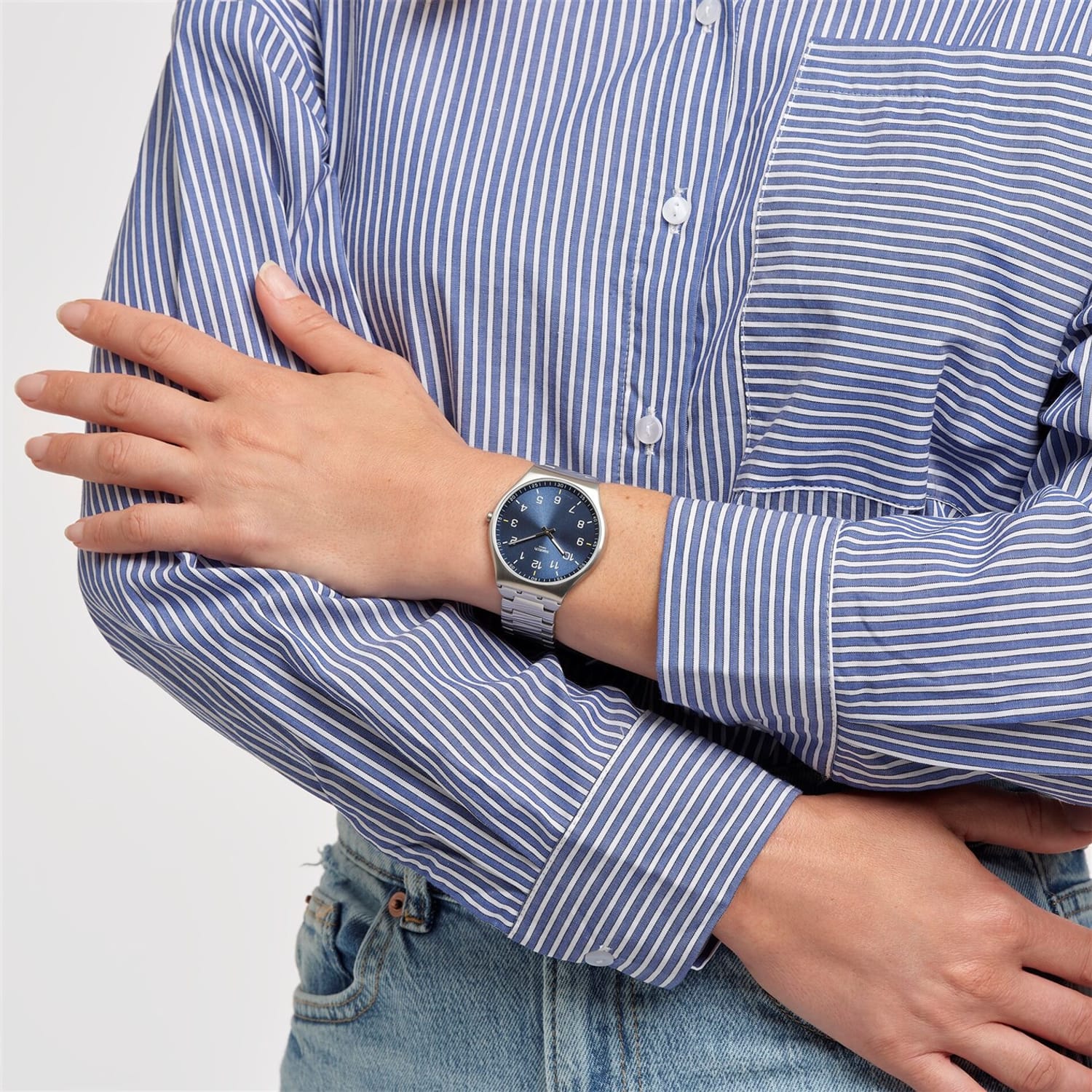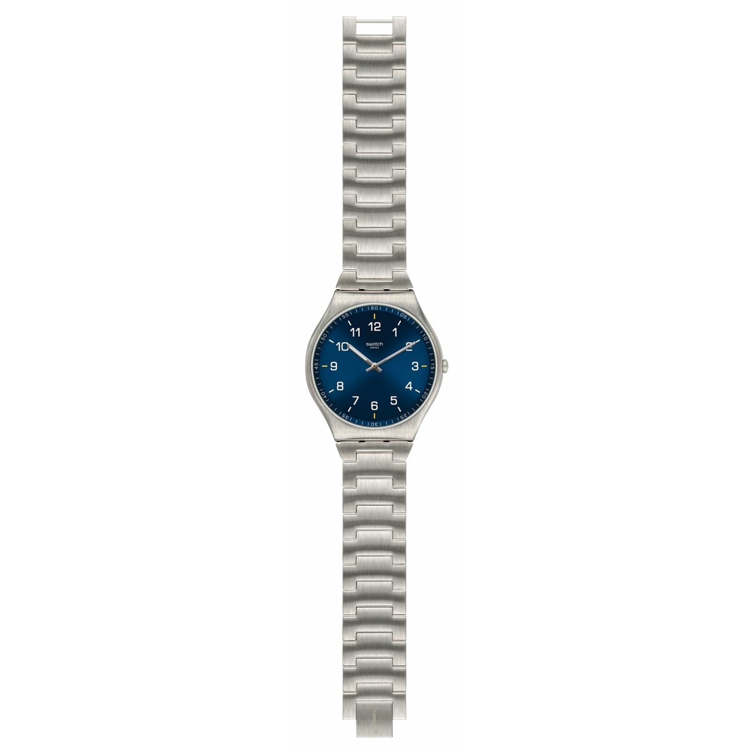 Discover the timeless elegance of Swatch with this wrist watch. Featuring a striking blue dial, this analogue timepiece is crafted with a durable steel bracelet strap, ensuring both style and comfort. Perfect for those who appreciate classic design and reliable functionality in their accessories. -