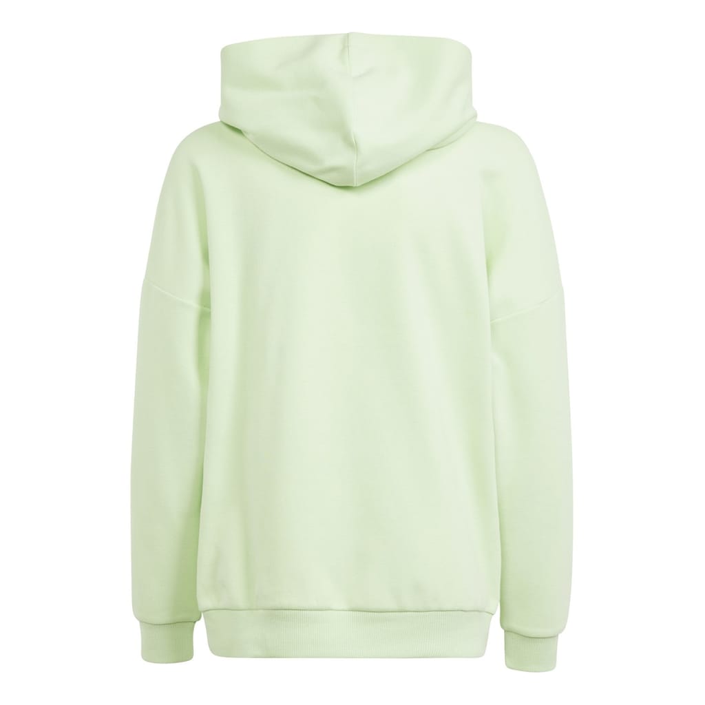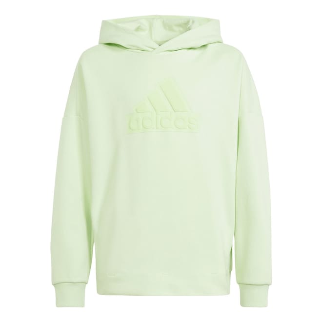 This adidas kids' top features a hooded neck and long sleeves with a drop shoulder design. The solid pattern is complemented by a logo embellishment, adding a touch of brand identity. Ribbed cuffs provide a snug fit, making it a comfortable choice for everyday wear. -