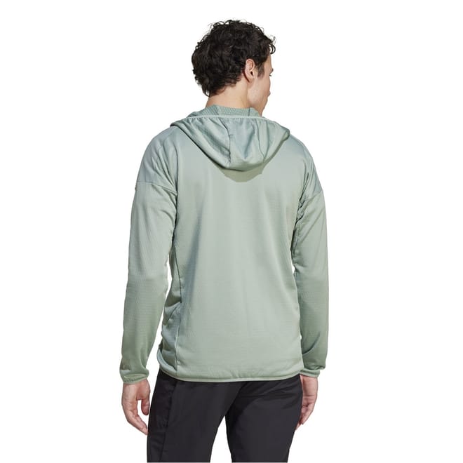 Zip up for active mountain days. Made for hikes, trail runs and ski touring, this adidas Terrex fleece jacket delivers sweat-wicking performance to keep you comfortable. It's made with CLIMAWARM+, which represents our best thermal innovation. Little details like a slim fit and body-mapped material placements make for distraction-free comfort through extended efforts. A windproof overlay across the front adds weather protection without limiting stretch or range of motion. Technical fleece fabric uses a loop construction and a honeycomb structure for a soft feel and warmth without brushing.