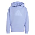 This adidas kids' top features a hooded neck and long sleeves with a drop shoulder design. The regular fit ensures comfort, while the ribbed cuffs add a touch of style. The solid pattern is complemented by a logo embellishment, making it a versatile addition to any wardrobe. -