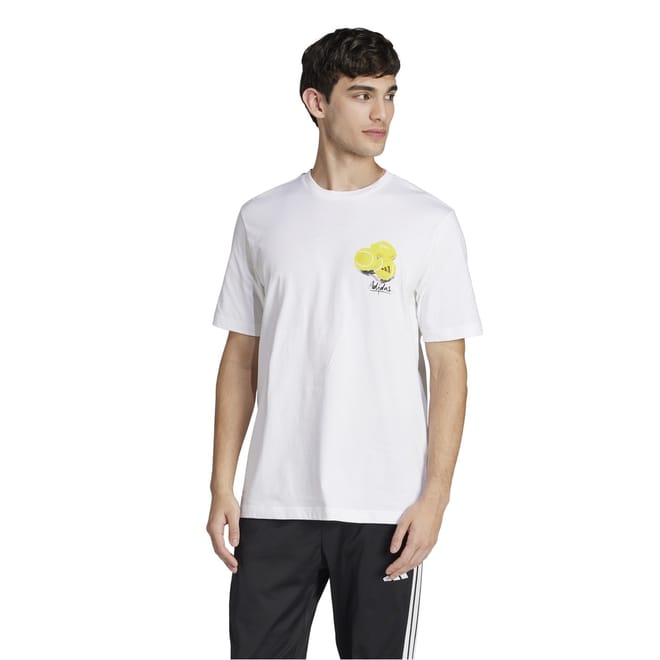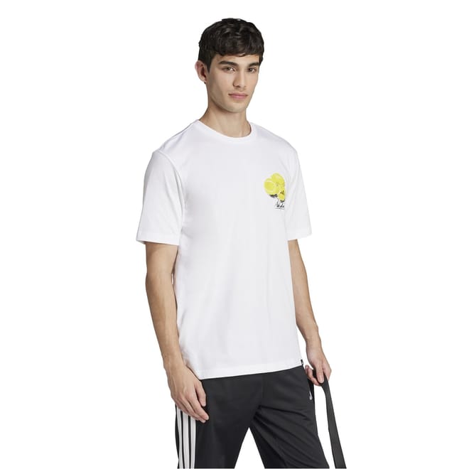 This adidas top features a regular fit with a crew neck and short sleeves. The graphic pattern adds a stylish touch, making it a versatile addition to your wardrobe. -