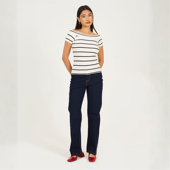 Brave Soul Women's Jeans. Straight leg, mid ride waist. Button and fly fastening, two waist pockets and two back pockets. Contrast stitching on all edges. -