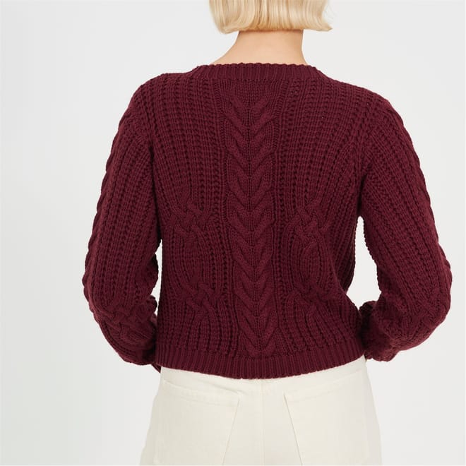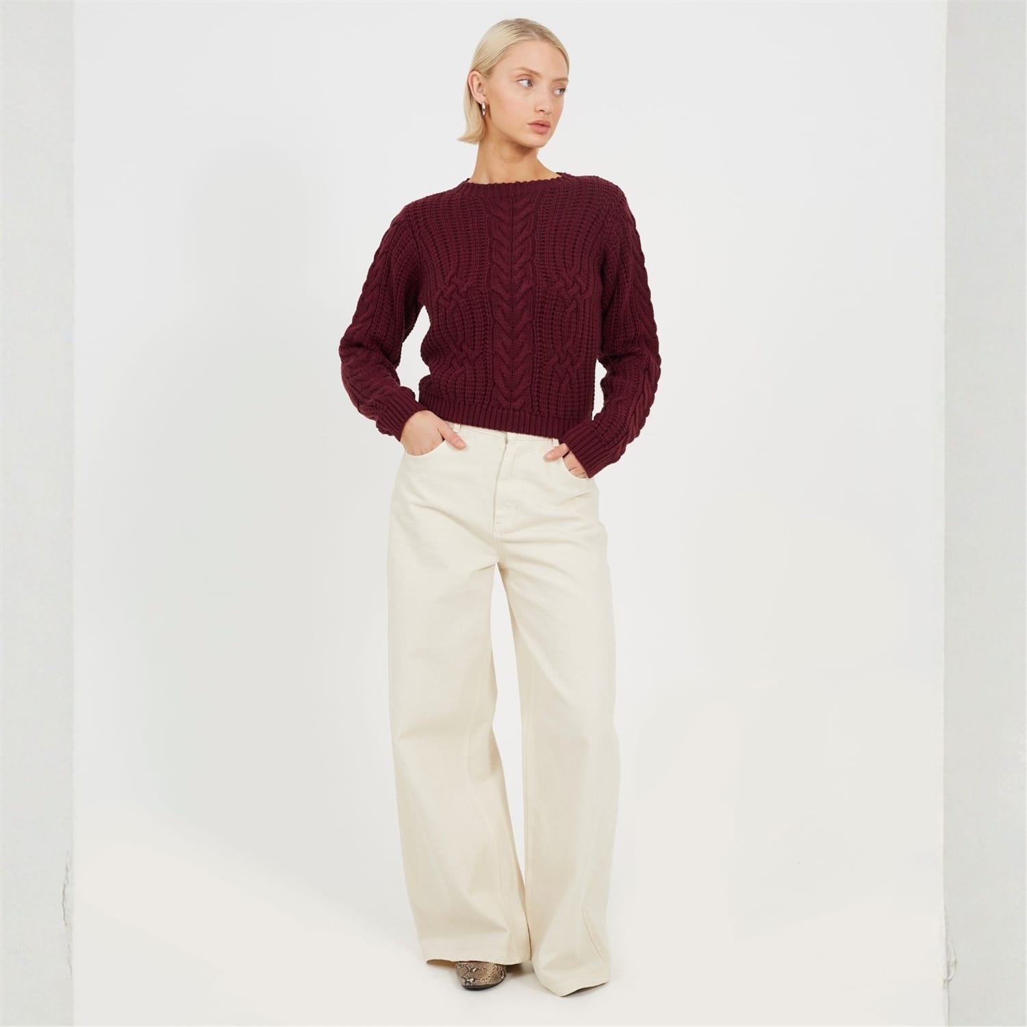 Brave Soul Women's Jumper. Crew neck, long sleeve. All over classic cable knit, ribbed neck, cuffs and hem. Cropped length, solid colourway. -