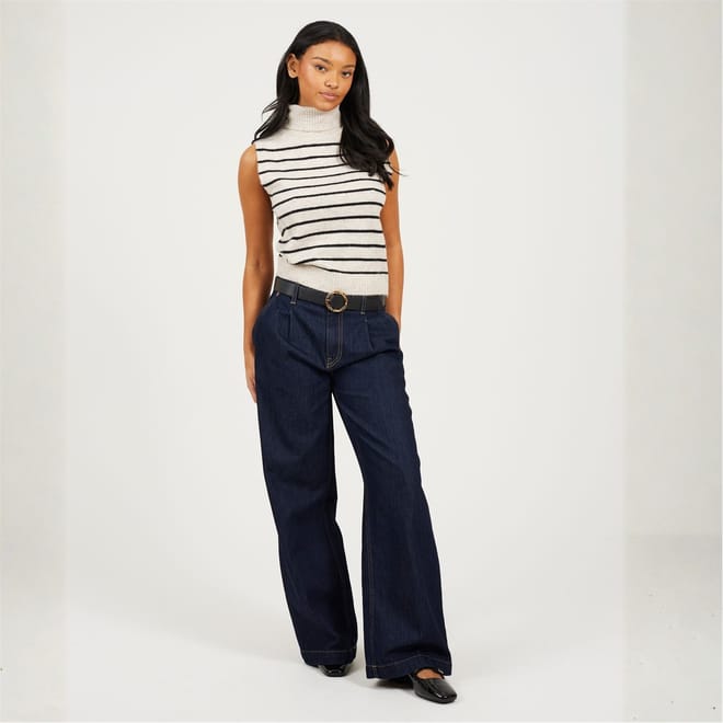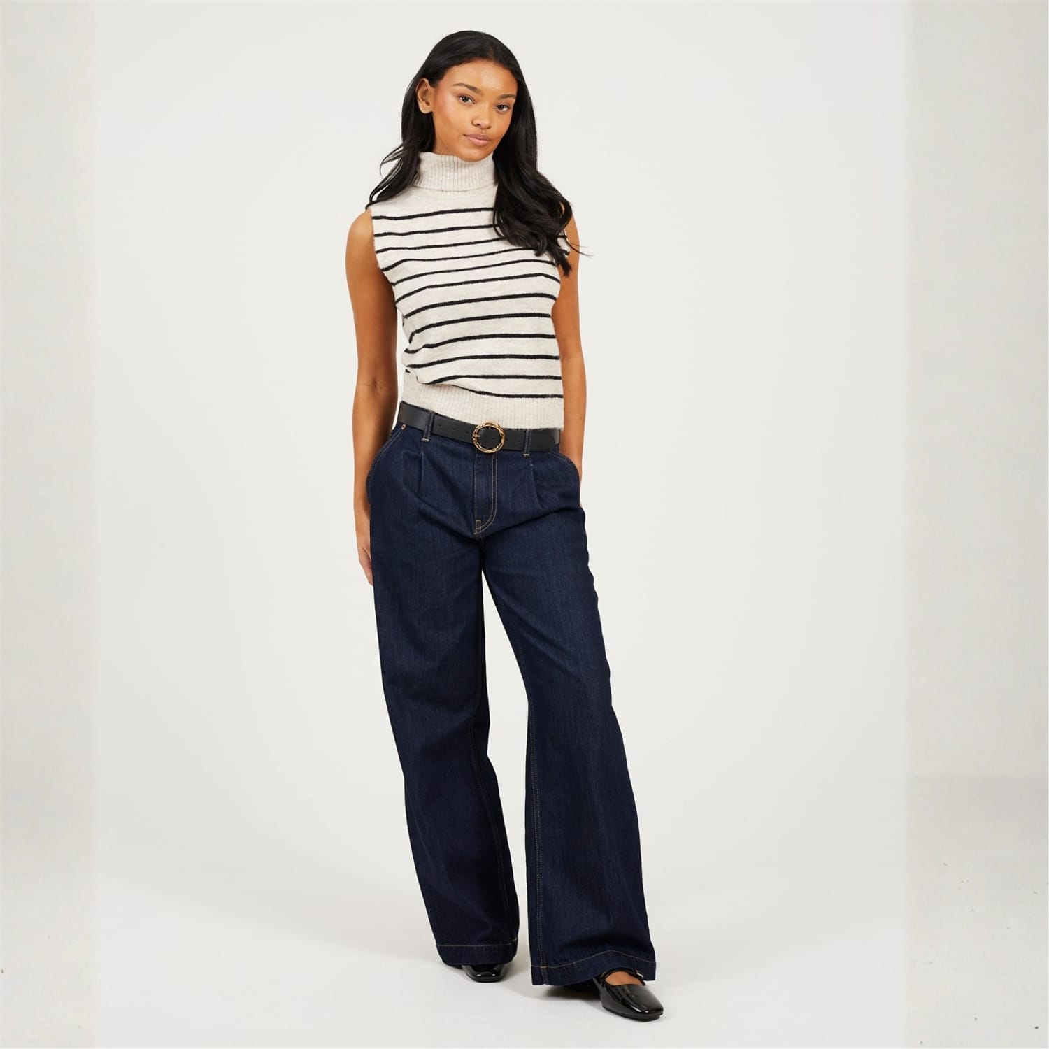 Brave Soul Women's knitted Tank. Sleeveless, ribbed roll neck, ribbed hem. Stripe knit pattern to body, super soft yarn. -