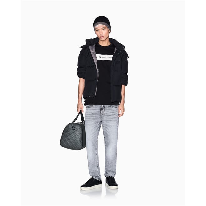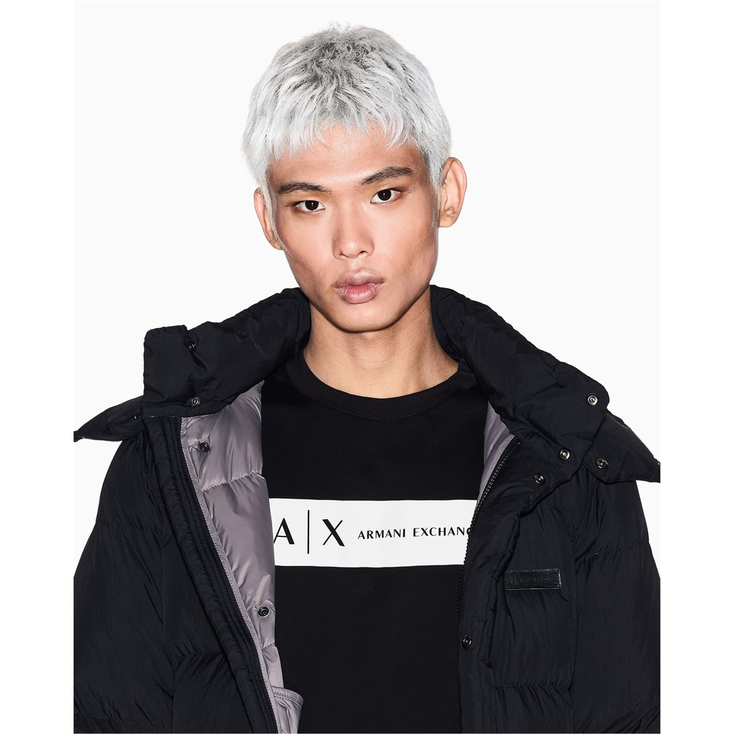 This Armani Exchange top is a casual staple featuring a regular fit and a crew neck. The short sleeves and graphic pattern add a modern touch, making it a versatile addition to any wardrobe. -
