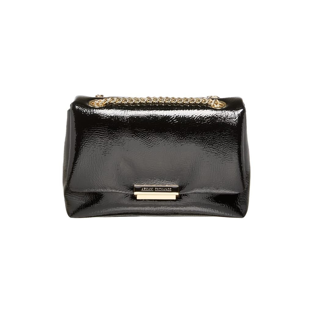 Discover the Armani Exchange messenger bag, a stylish accessory featuring a flap closure and shoulder handle for easy carrying. This bag is adorned with metal branding and a chain embellishment, adding a touch of sophistication to your ensemble. -