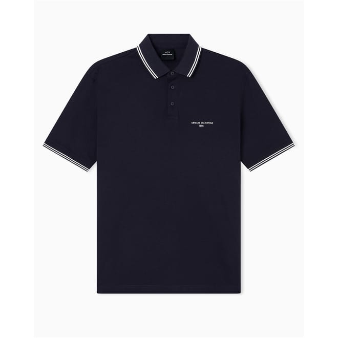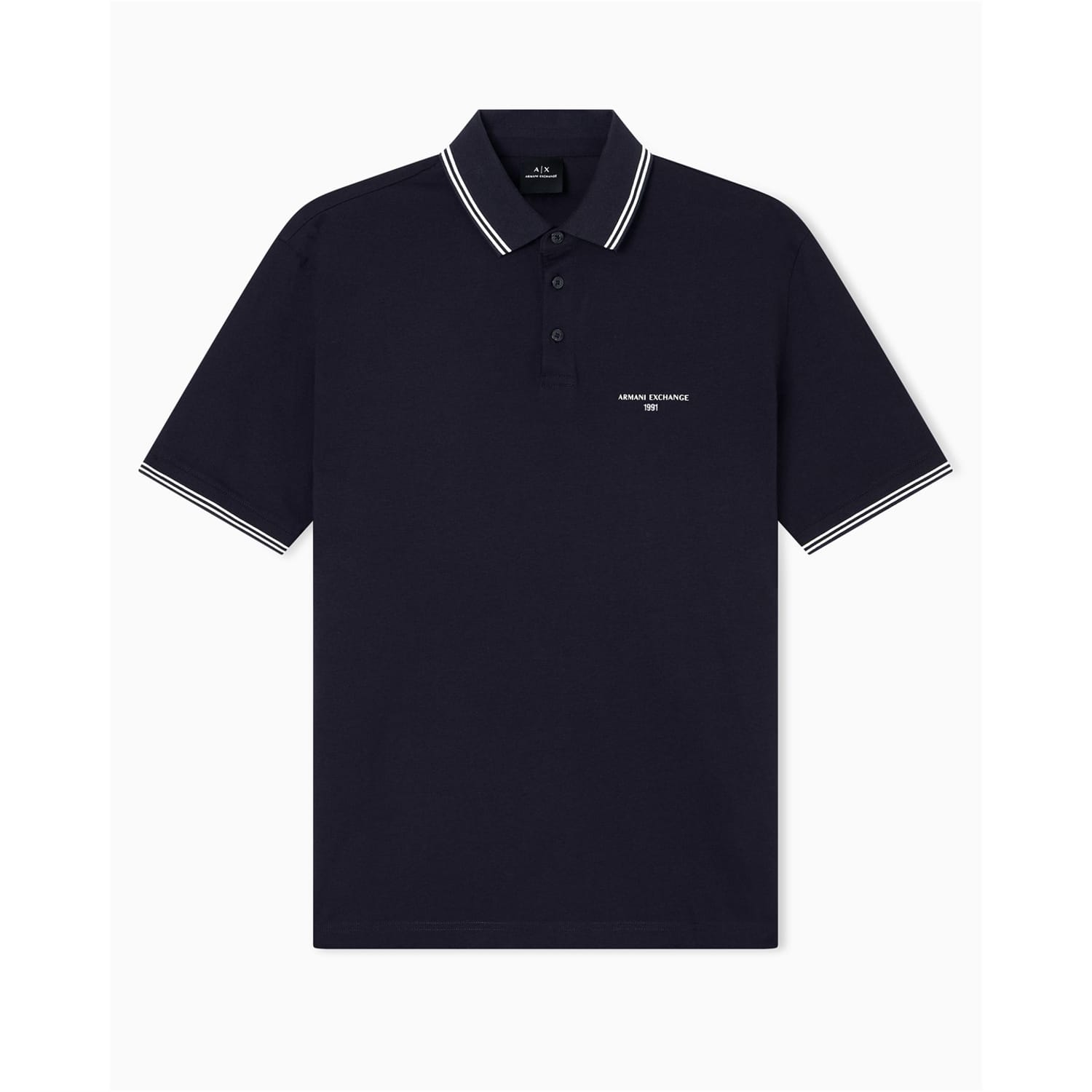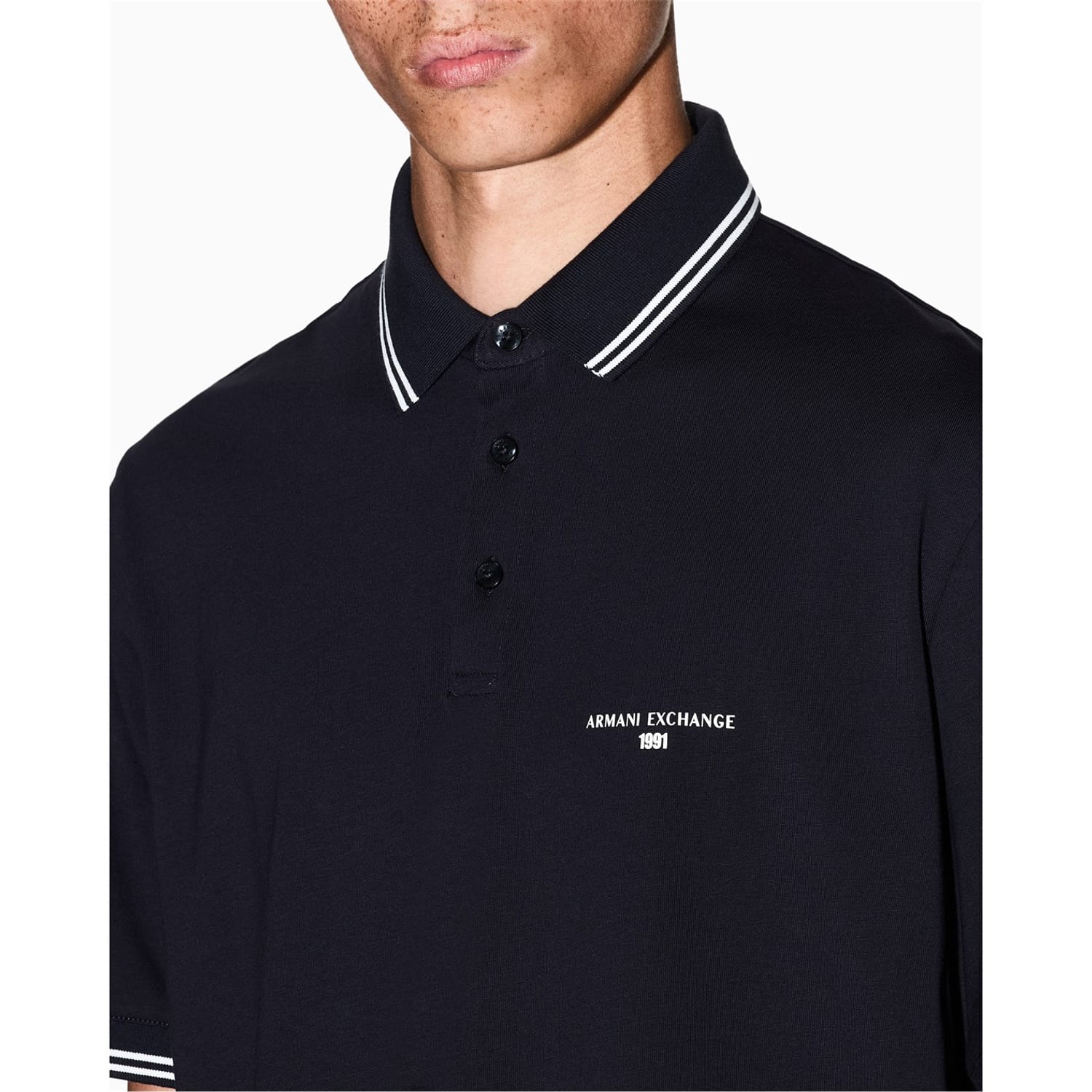 This Armani Exchange top is a casual staple featuring a solid pattern and a polo collar. Designed with short sleeves and a ribbed cuff, it offers a regular fit for everyday comfort. The top is embellished with a logo, adding a touch of brand identity. -