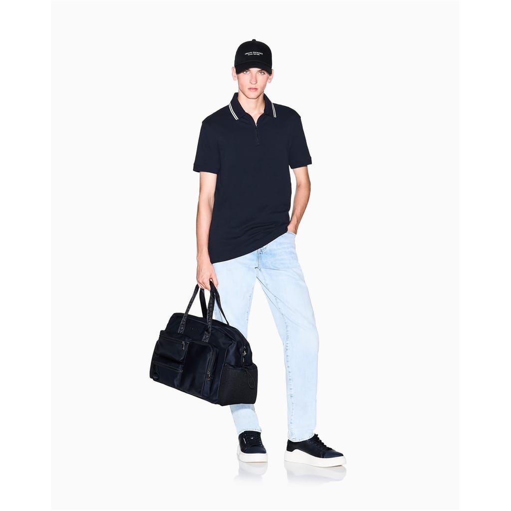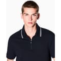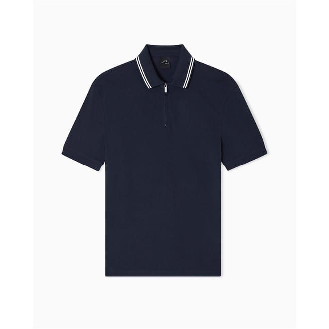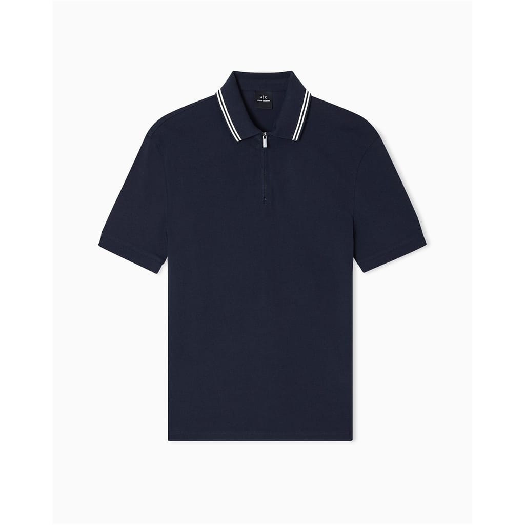 This Armani Exchange top is a casual essential, featuring a solid pattern and a polo collar. Designed with a short sleeve and a regular fit, it offers comfort and style. The top includes a convenient zipper closure, making it a versatile addition to your wardrobe. -