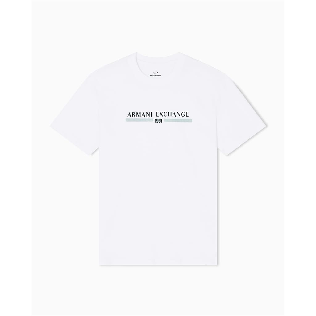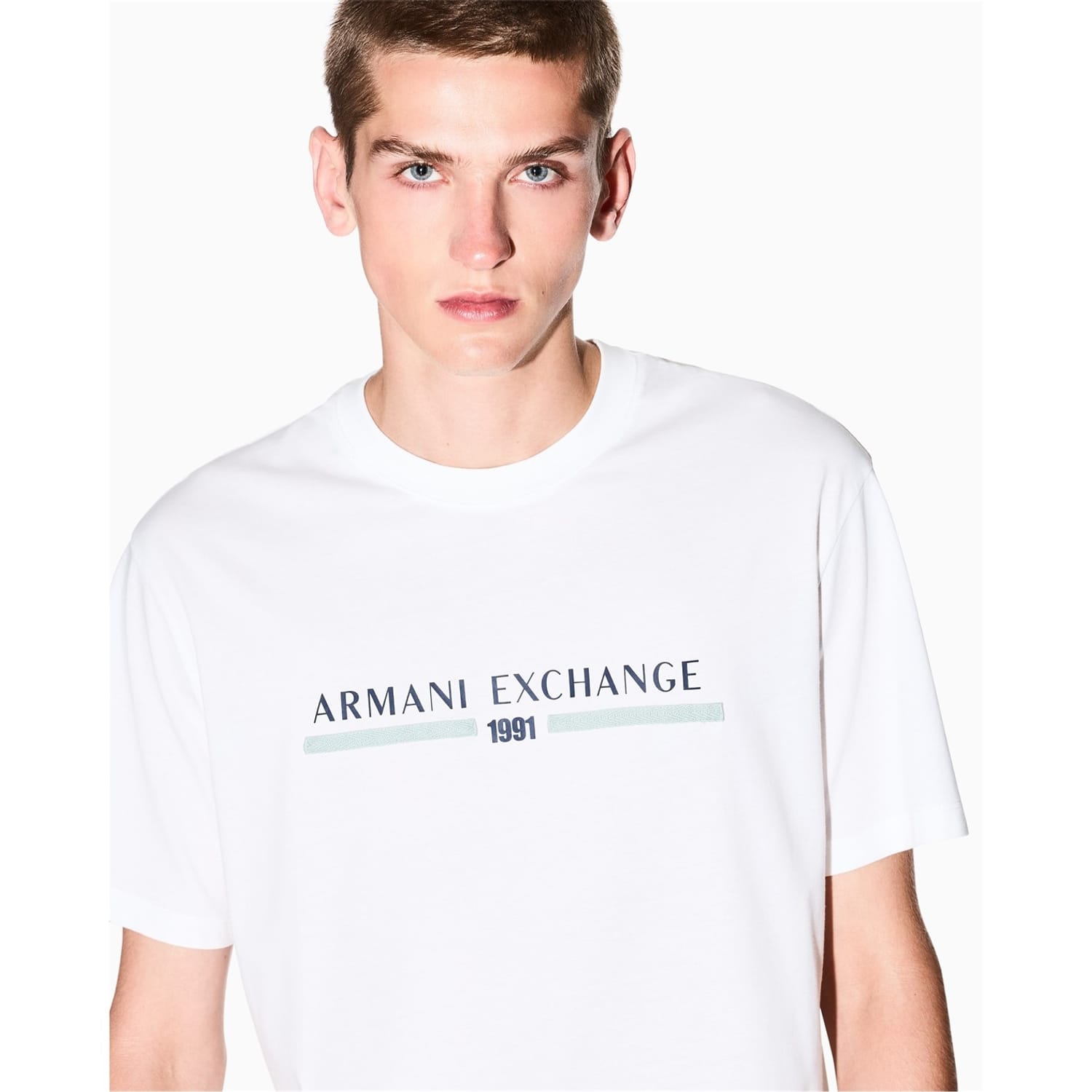 This Armani Exchange top is a casual staple featuring a regular fit and a crew neck. The short sleeves and graphic pattern add a modern touch, making it a versatile addition to any wardrobe. -