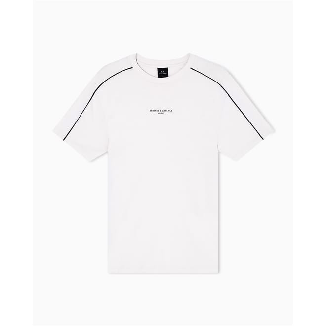 This Armani Exchange top features a regular fit and a classic crew neck. Designed with short sleeves, it offers a solid pattern for a timeless look. -