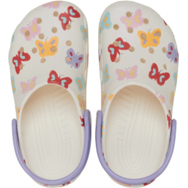 Discover the playful charm of Crocs Clogs, featuring a unique cartoon pattern. These Shuv-style clogs offer a comfortable fit with their round, closed toe design. Perfect for those who appreciate both style and comfort, these shoes are a delightful addition to any casual footwear collection. -