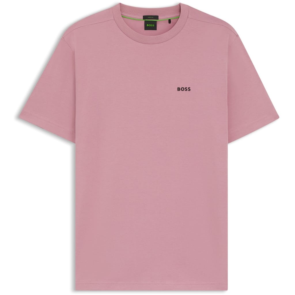 BOSS Logo T-Shirt features a clean design and quality fabric. The discreet logo detail adds subtle branding while maintaining the classic aesthetic that integrates seamlessly across your collection.
