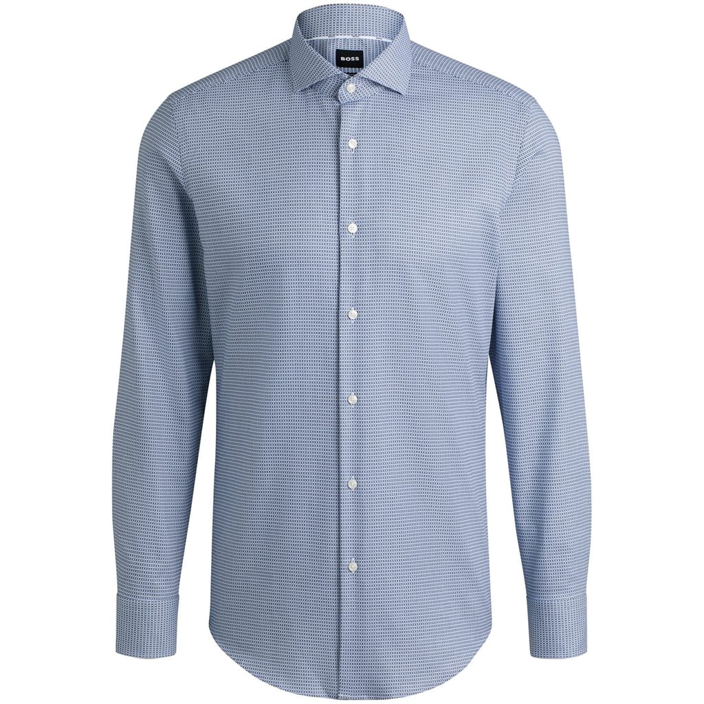 The BOSS H-HANK Spread C1 shirt delivers simplicity with expert tailoring. This long-sleeve design features a spread collar that frames the face with balanced proportions, creating a look for various occasions.