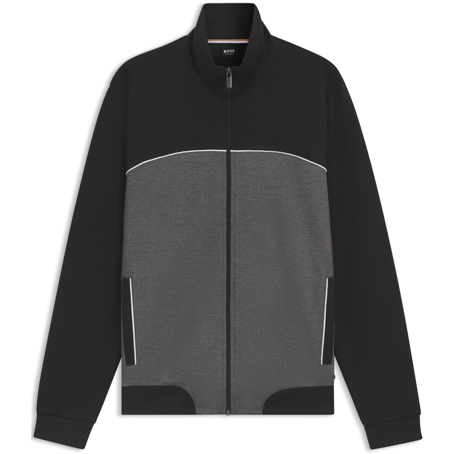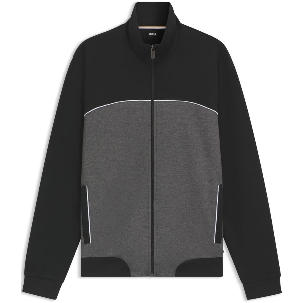 The BOSS Tracksuit Jacket is designed in a regular fit for easy layering and all-day comfort. Made from a cotton-rich blend with mixed structures, it’s finished with contrast piping for a sporty touch. Perfect for casual outings, travel, or throwing on after training.