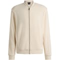 This Boss bomber jacket features a classic bomber collar and a solid pattern, offering a timeless look. Designed with a regular fit, it includes a convenient front zipper closure and practical front zipper pockets. The short length is complemented by ribbed cuffs and hem, ensuring a comfortable fit. Ideal for those seeking a stylish yet functional outerwear option. -