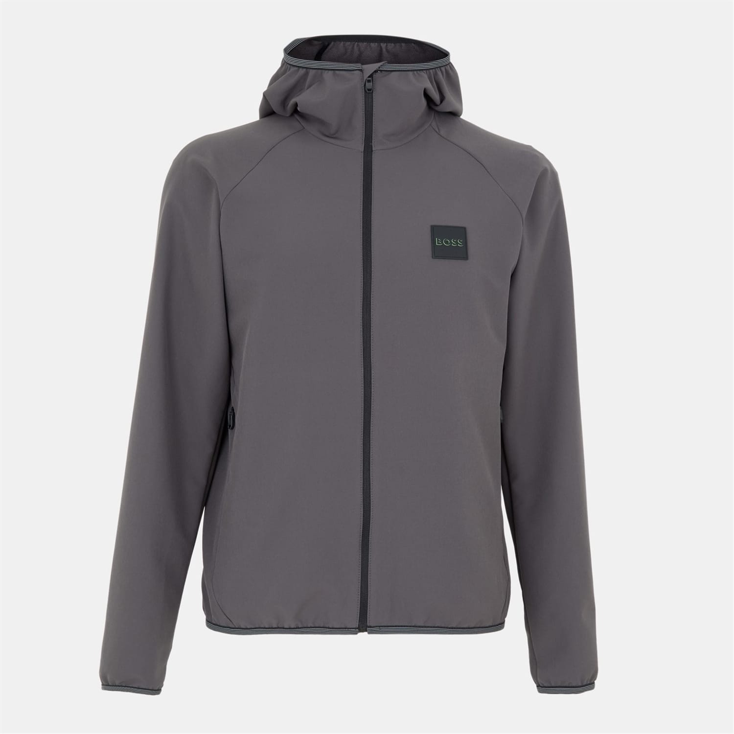 The Boss Future windbreaker jacket features a hooded neckline and a front zipper closure, offering a practical and stylish choice for any wardrobe. Designed with raglan sleeves and elasticated cuffs, it ensures comfort and ease of movement. The jacket's short length and regular fit provide a modern silhouette, while the solid pattern and logo patch add a touch of sophistication. An elasticated hem and zipped pocket complete the look. -