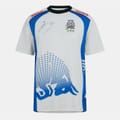 This Hugo top features a regular fit with a crew neck and short raglan sleeves, offering a comfortable and stylish look. The ribbed collar adds a touch of detail, while the straight hem provides a clean finish. The graphic print pattern is perfect for those who appreciate a sporty aesthetic, making it a great addition to any racing collection. -