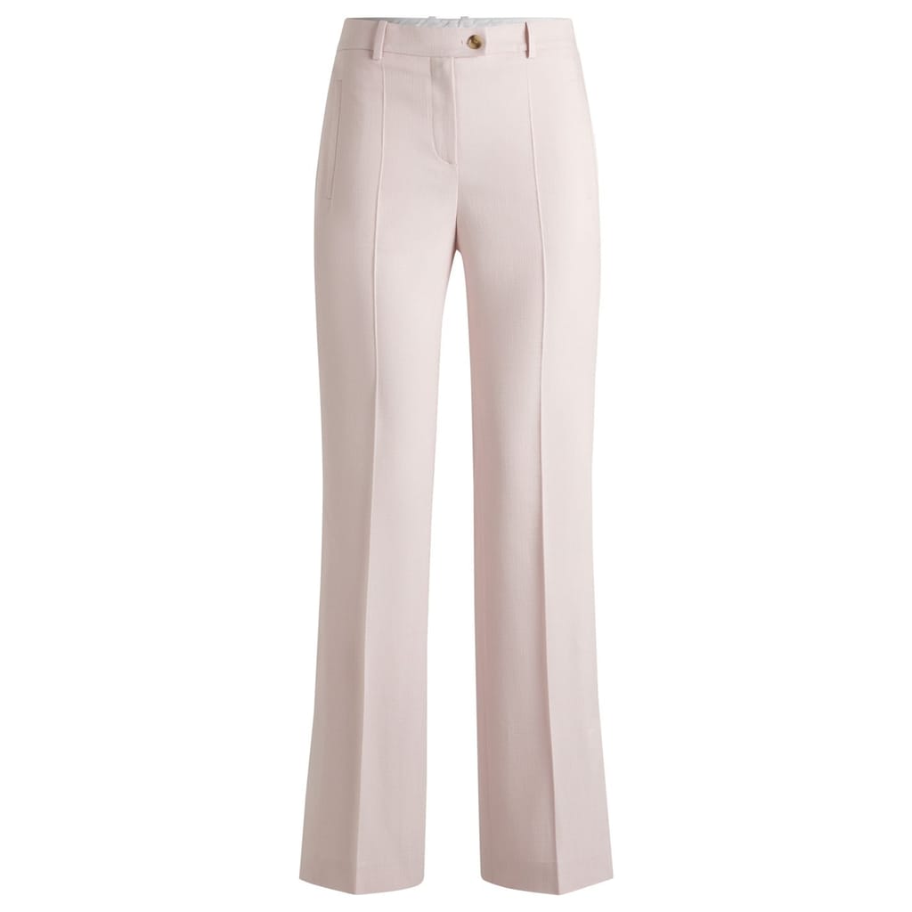 Discover the refined elegance of Boss chinos, featuring a zip fly and front button closure. These trousers are designed with horizontal and flat front pockets, complemented by stitched detailing for a sophisticated touch. Perfect for those seeking a blend of style and functionality. -