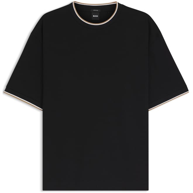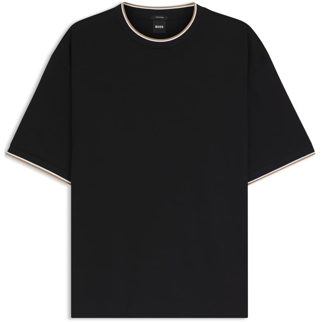 This Boss top features a classic crew neck and short sleeves, offering a regular fit. The solid pattern is complemented by a straight hem, while the logo embellishment adds a subtle touch of brand identity. Ideal for those seeking a simple yet stylish addition to their wardrobe. -