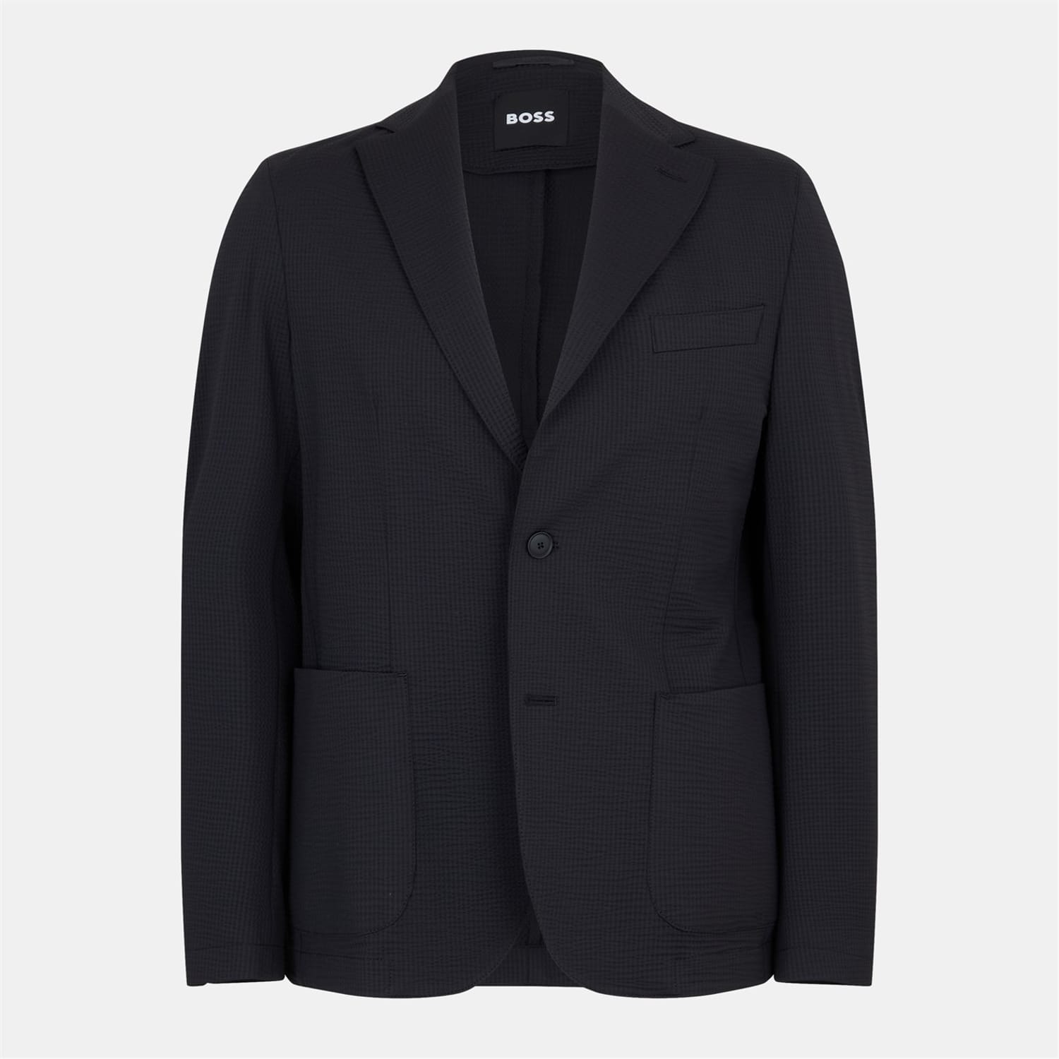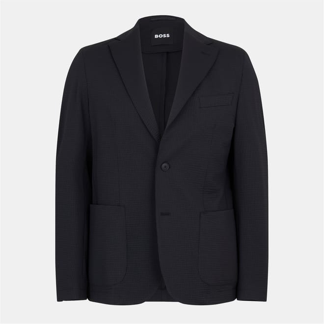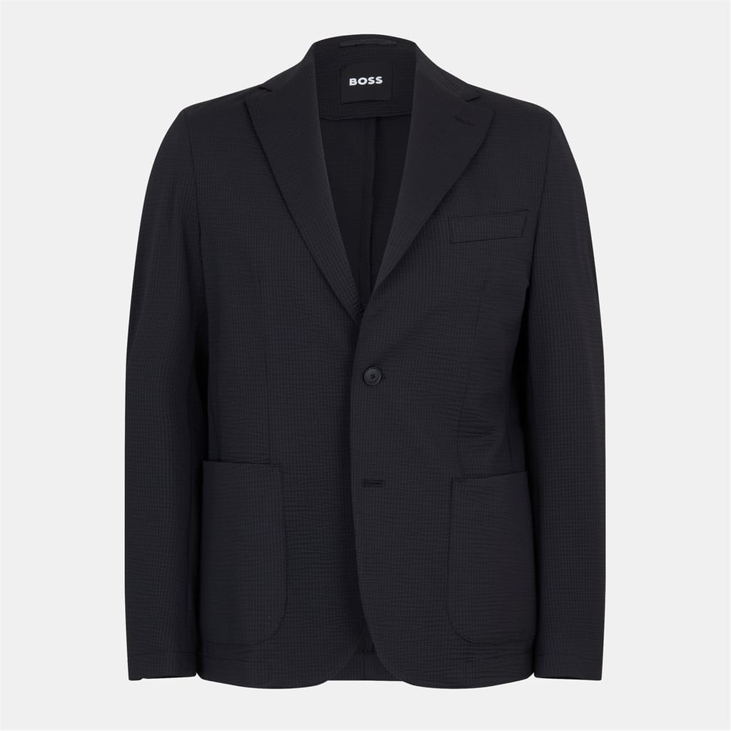 This Boss blazer from the formal collection features a lapel collar and a button closure. Designed with a regular fit, it has a straight hem and solid pattern. The blazer is equipped with patch pockets for added functionality. -