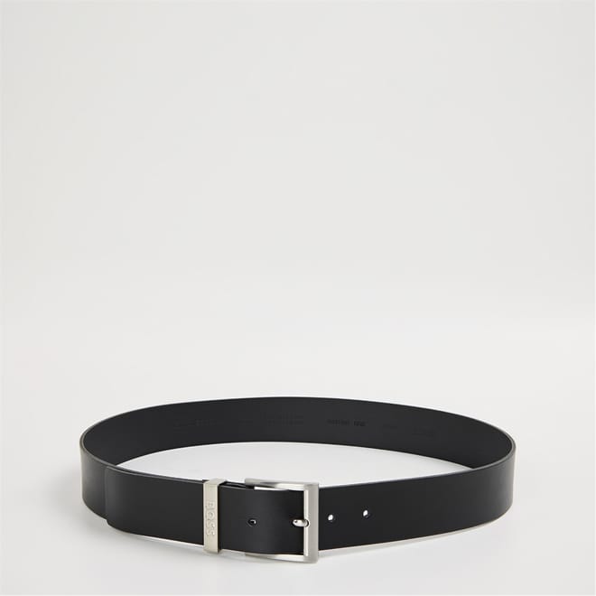 Elevate your ensemble with this BOSS leather belt, a sophisticated choice for dress occasions. Featuring a sleek metal buckle and adorned with a subtle metal logo, this belt combines functionality with understated elegance. Crafted for those who appreciate refined accessories, it seamlessly complements any formal attire. -
