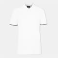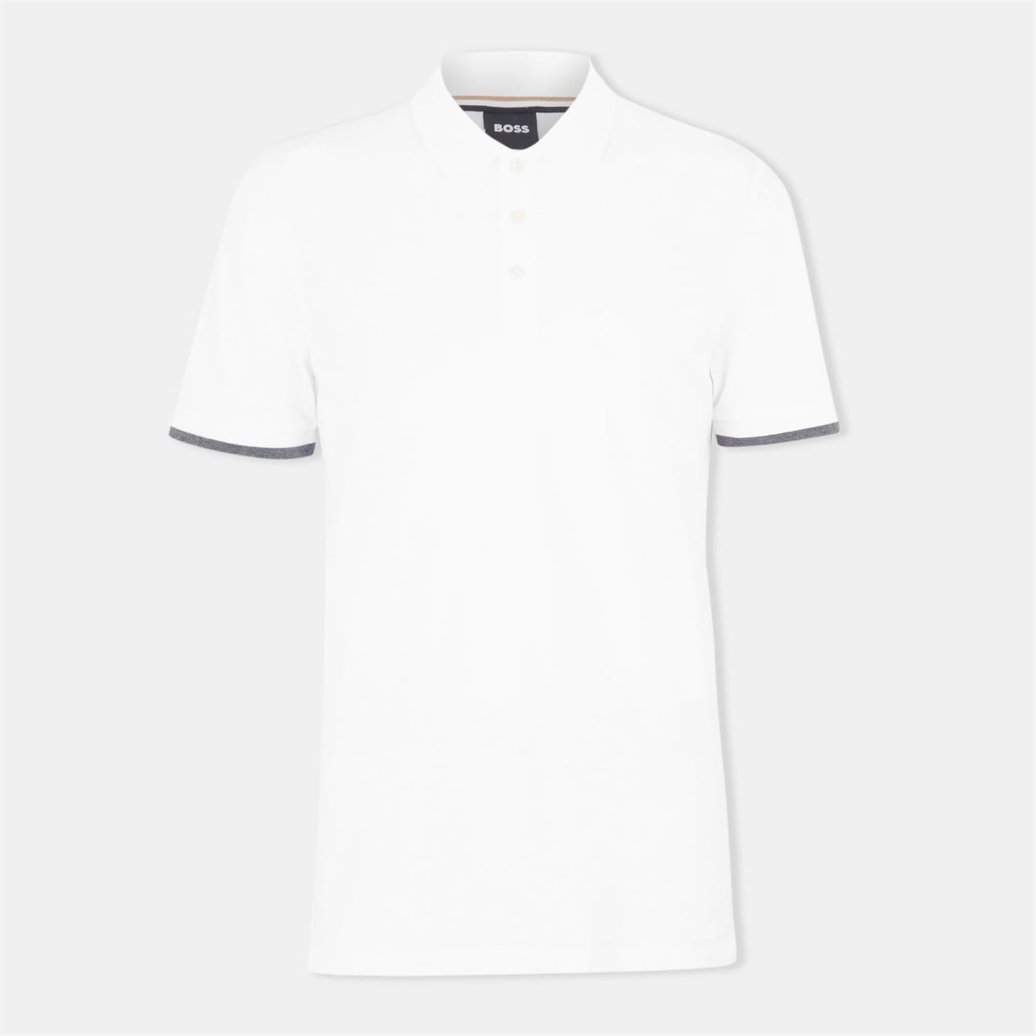 This Boss top features a classic polo collar and a front button closure, offering a regular fit with short sleeves and fitted cuffs. The solid pattern is complemented by a subtle logo embellishment, adding a touch of sophistication to this versatile piece. -
