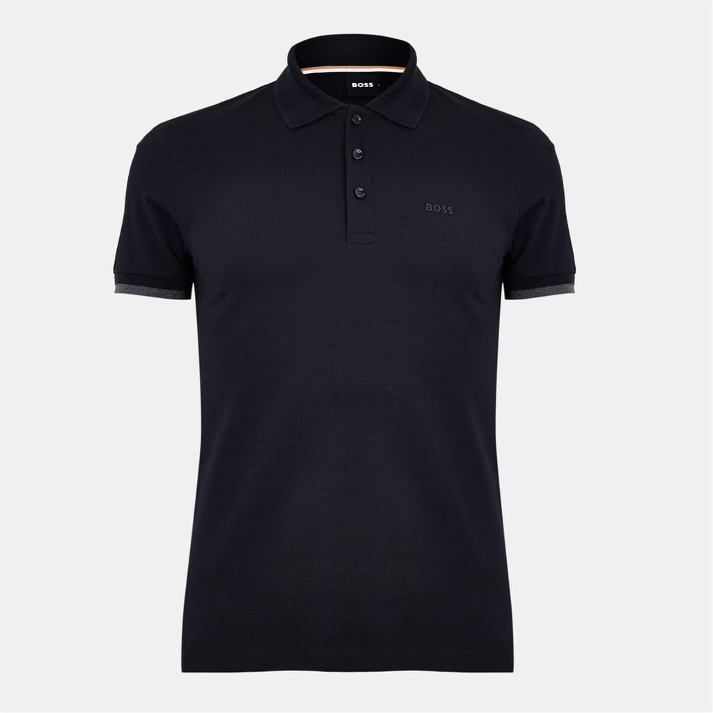 This Boss top features a classic polo collar and a front button closure, offering a timeless look. The short sleeves and ribbed cuffs add a touch of detail, while the solid pattern ensures versatility. Designed in a regular fit, this top is perfect for a polished yet relaxed style. -