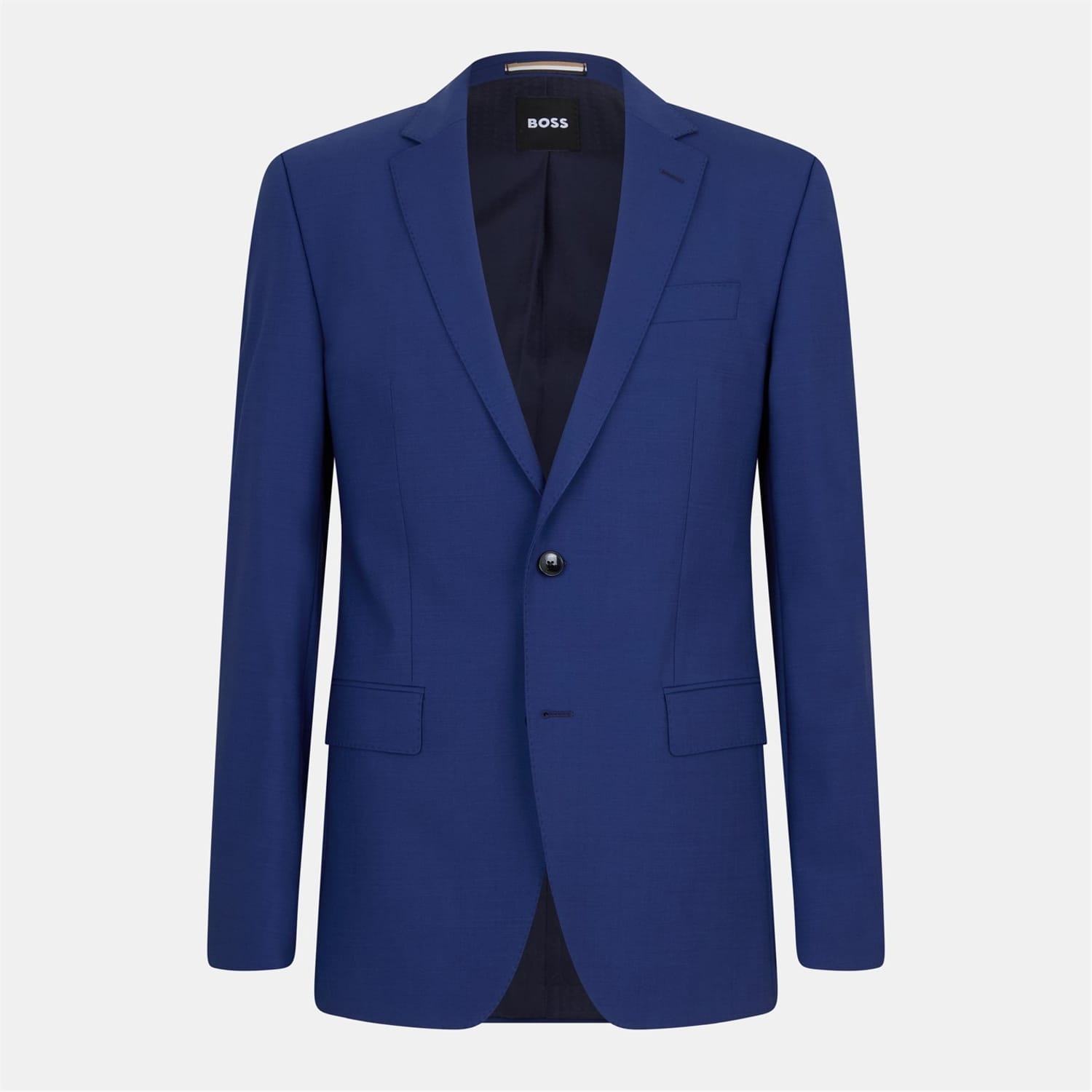 This Boss blazer is a sophisticated choice for formal occasions. Featuring a notch collar and a curved hem, it offers a regular fit for a classic silhouette. The solid pattern enhances its timeless appeal, while the button closure adds a touch of elegance. Practicality is ensured with flap and chest pockets, making it a versatile addition to your wardrobe. -